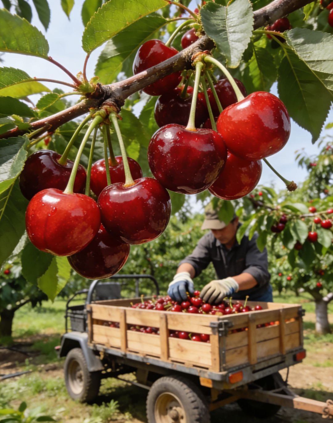 能够远距离运输的车厘子,本身也是经过筛选的品种。这些品种果肉较硬、果柄粗壮、果皮厚实,更能耐受运输中的颠簸。