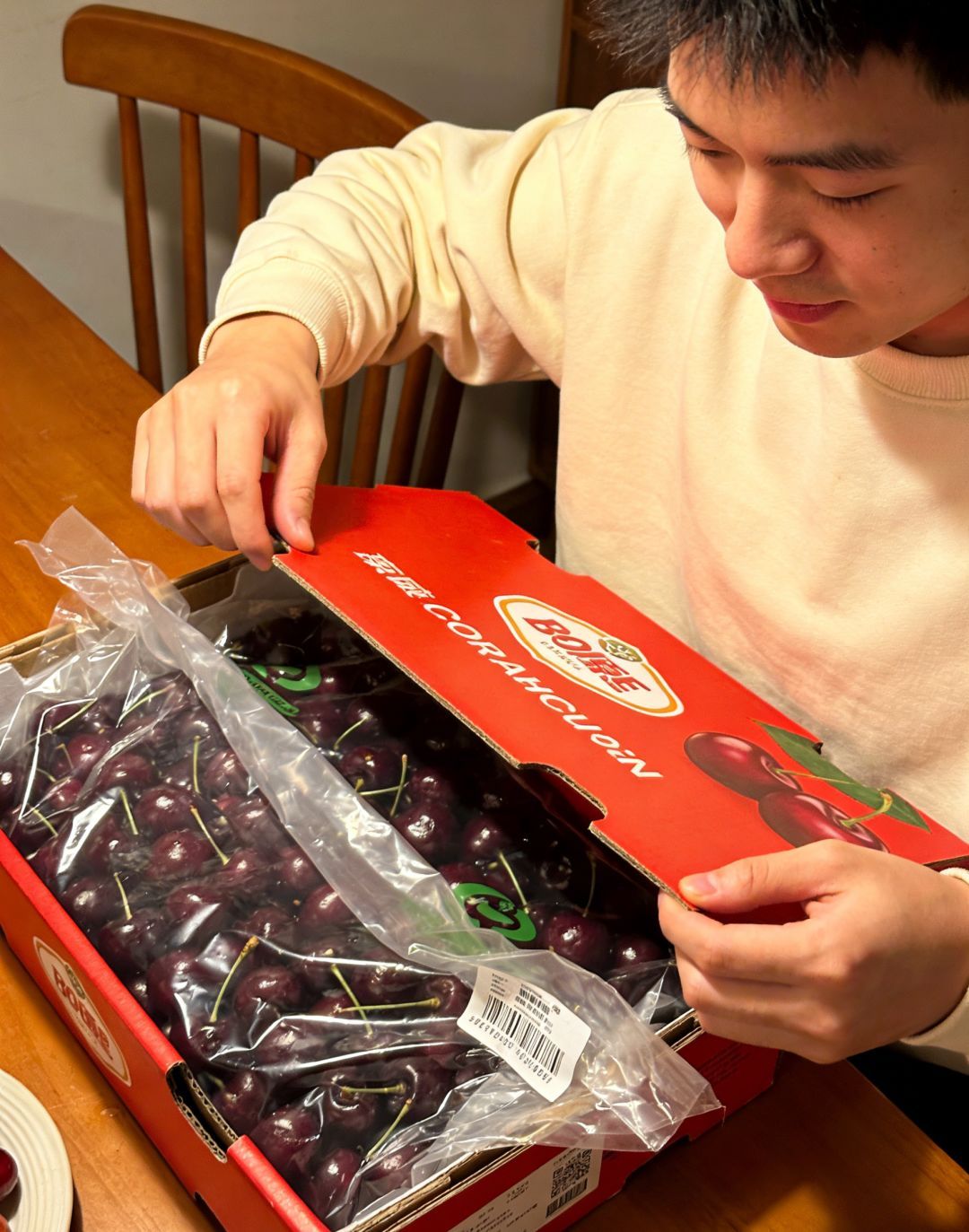 更重要的是,果农们会在它们大约八成熟、口感还比较脆硬的时候采摘。这个时机非常巧妙,相当于为车厘子预留了在旅途中继续成熟的“时间窗口”。