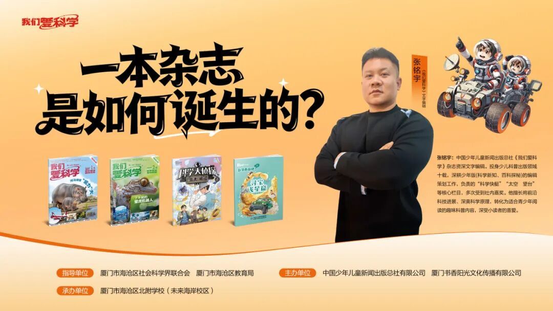 张铭宇编辑从《我们爱科学》这本创刊最早的国家级少儿科普期刊讲起,揭秘杂志诞生全流程,每一本杂志的背后都藏着编辑、作者、插画师、审校老师们的共同努力。