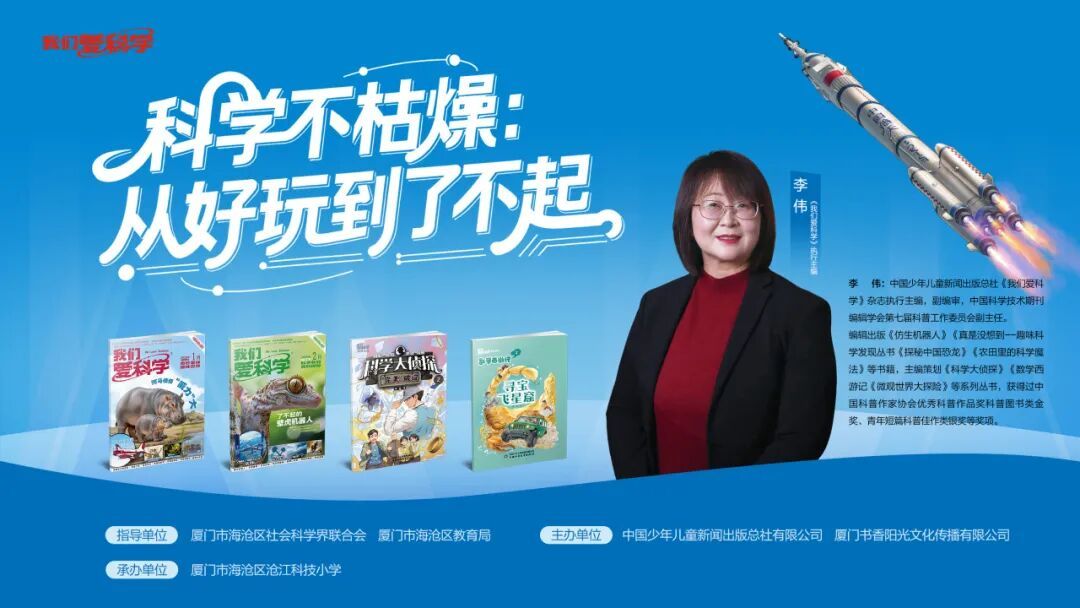 3月31日,中国少年儿童新闻出版总社《我们爱科学》杂志资深编辑团队 —— 张铭宇老师、李伟老师,带着满满科学干货,走进海沧区北附学校未来海岸校区、沧江科技小学,为三、四年级696名学生,献上两场别开生面、趣味十足的科普盛宴!本次讲座以一本杂志是如何诞生的?、科学不枯燥:从好玩到了不起科学为主题,让孩子们在轻松欢乐的氛围里,解锁科学奥秘,种下探索未知的种子。