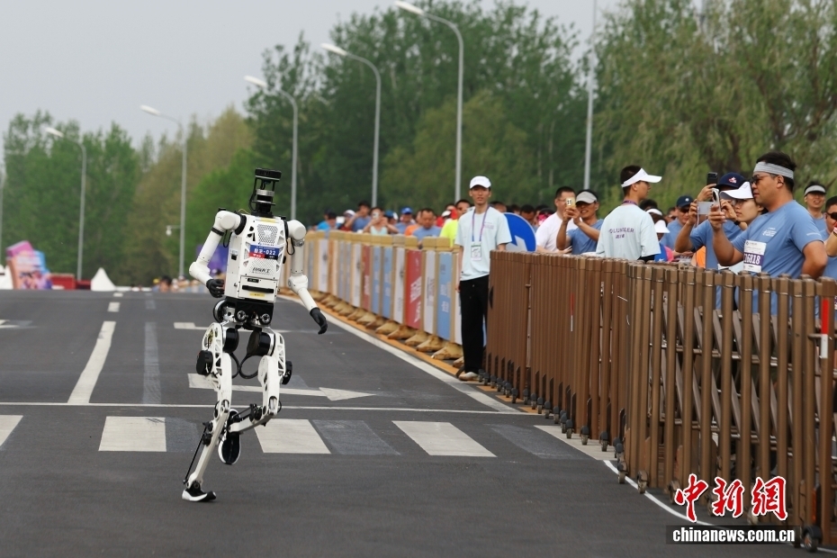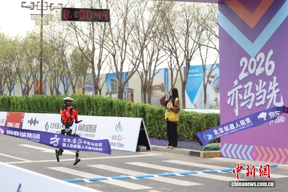 4月19日,2026北京亦庄半程马拉松暨人形机器人半程马拉松在北京亦庄举行。齐天大圣队自主选手“闪电”机器人凭借50分26秒(净用时)的成绩获得冠军。