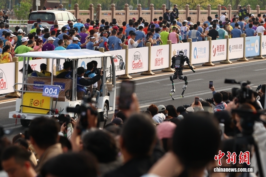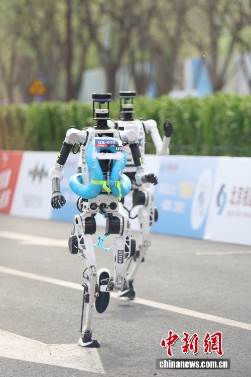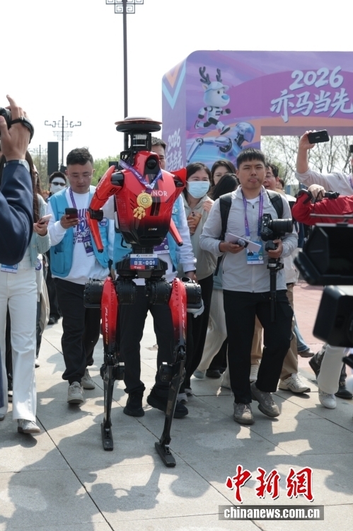 4月19日,2026北京亦庄半程马拉松暨人形机器人半程马拉松在北京亦庄举行。雷霆闪电队自主选手“闪电”机器人获得亚军。
