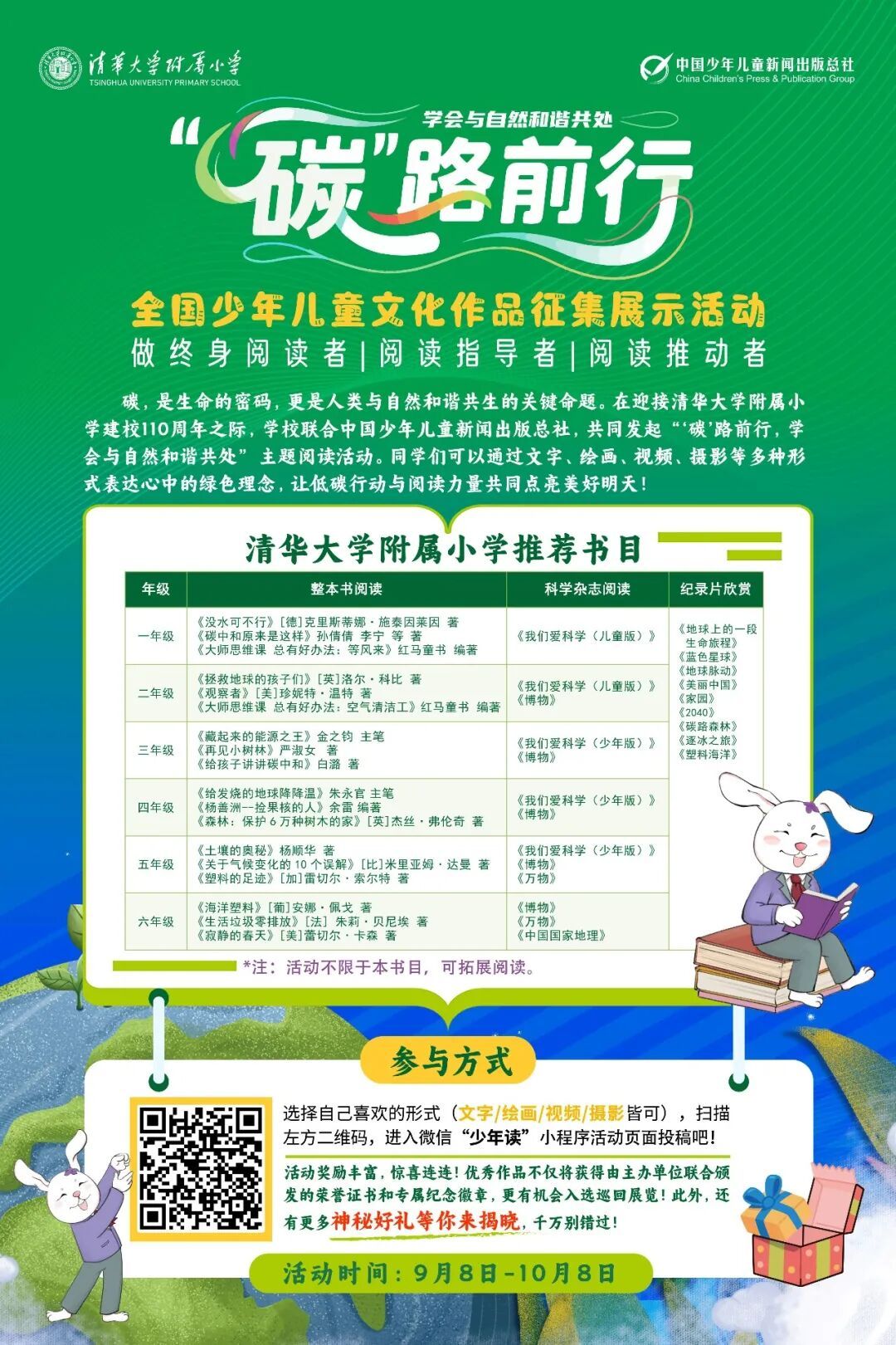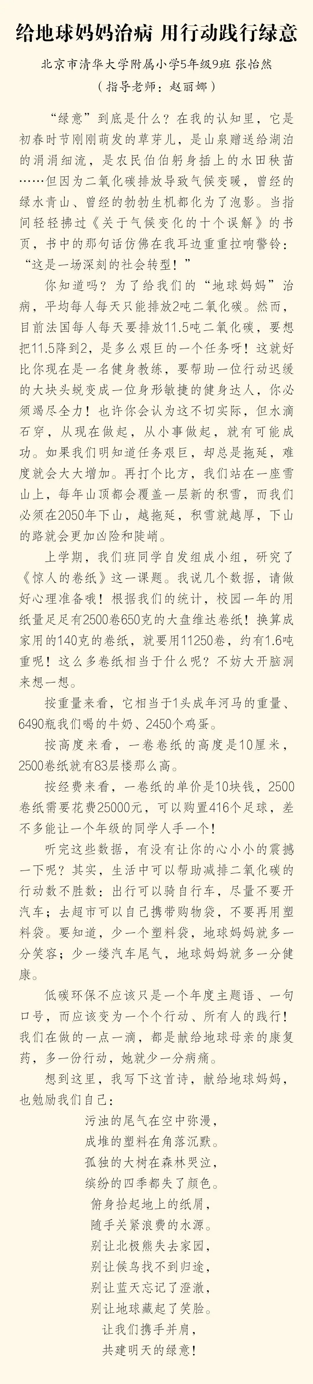 清华附小&中少总社 “碳路前行” 文化作品征集活动已于10月8日圆满收官!本活动自9月8日启动以来,在短短一个月的时间内得到了全国各地少年儿童的热烈响应和积极参与。