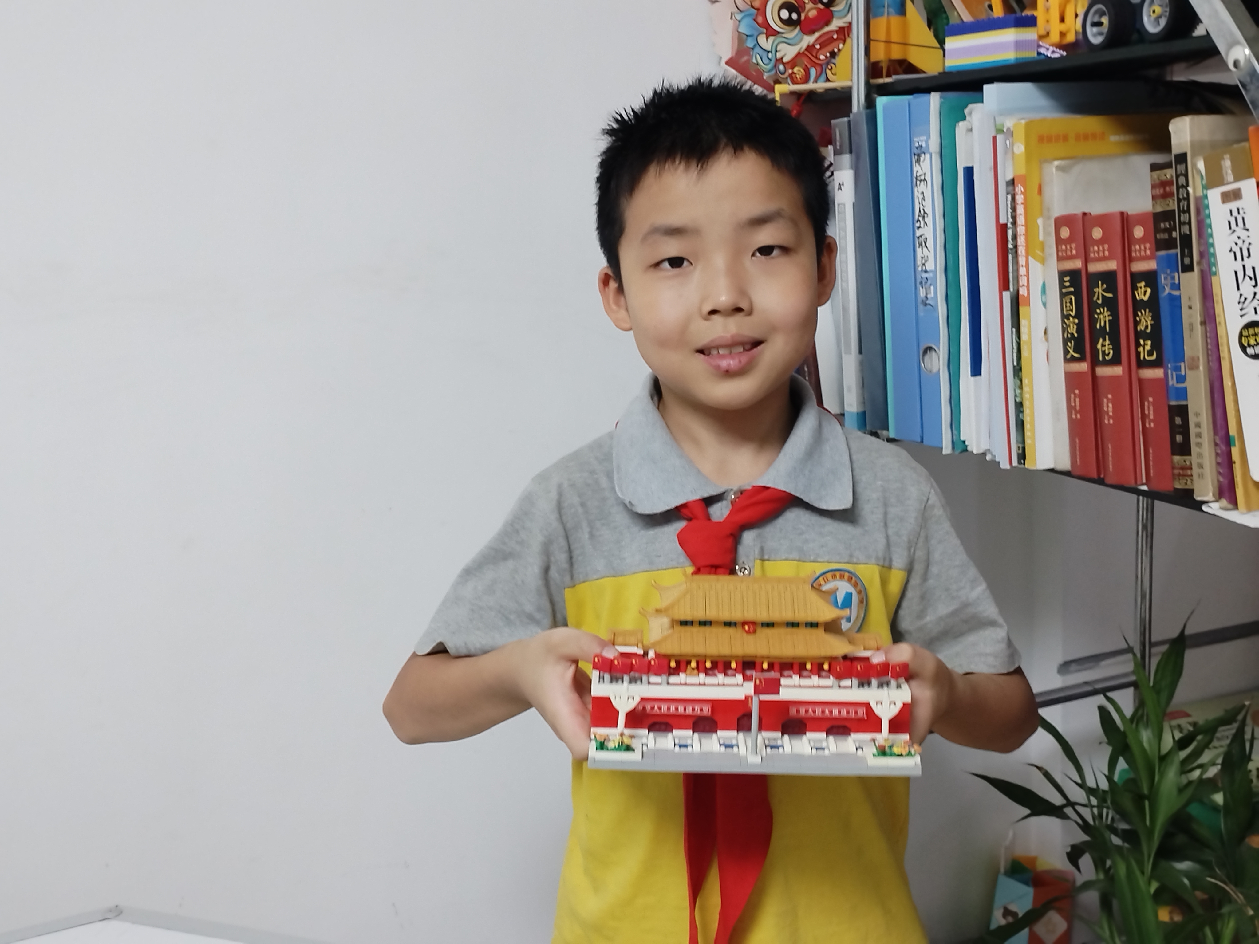 亲爱的祖国妈妈,我用小小的乐高积木,一块一块拼出了雄伟的天安门。就像您用智慧和汗水,一点一滴建设出今天强大的中国。每一块积木都代表着我们少年儿童对您的热爱与想象。站在这里,我仿佛看到了五星红旗在真正的天安门前升起,心中充满了自豪!