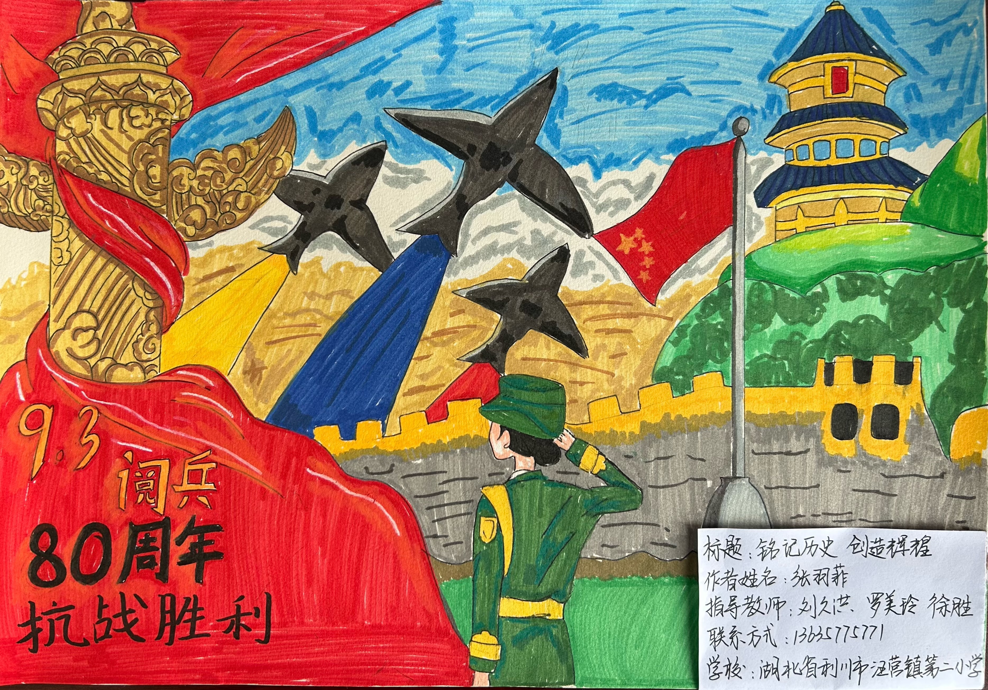 画面中飘扬的红旗,上面写着“9.3 阅兵”和“抗战胜利80周年”,还有雄伟的华表、展翅的和平鸽、威武的军人、壮丽的长城以及鲜艳的五星红旗,共同构成了一幅庄重而充满力量的画面。通过这些元素,展现了中国人民对抗战胜利的纪念,以及对和平的向往和对国家强大的自豪,体现了中华民族不屈的抗争精神和对和平来之不易的珍惜。