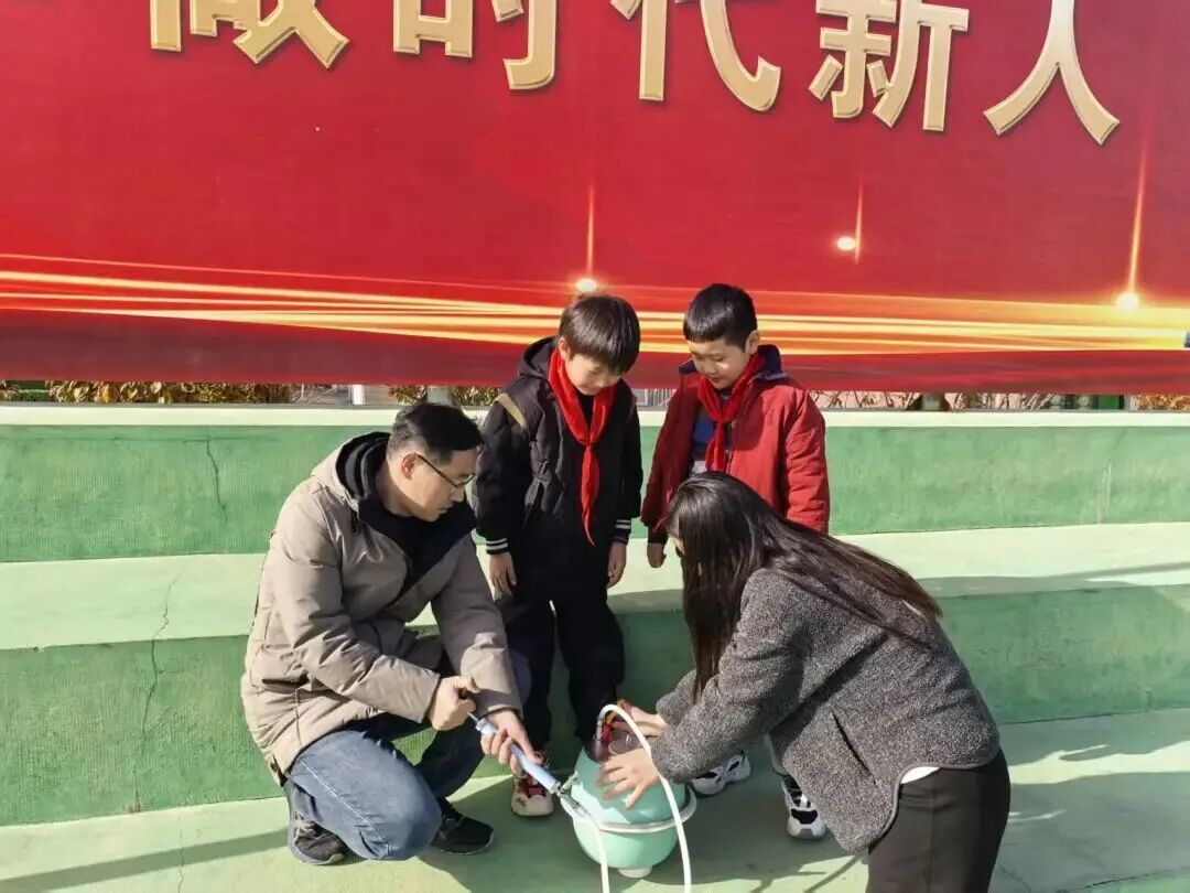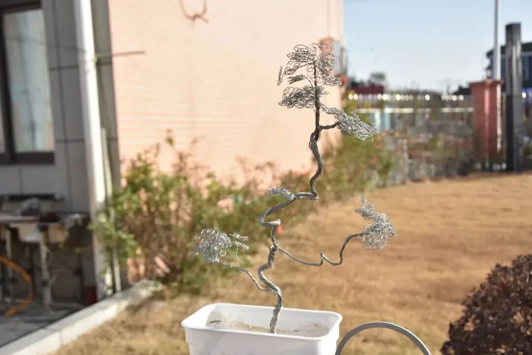 在“科技护树御寒衣”展区,学生们亲手为校园树木穿上了由旧衣物与彩色毛线编织的“冬衣”,既传递着环保理念,也为这个科技节日增添了一抹温暖的色彩。