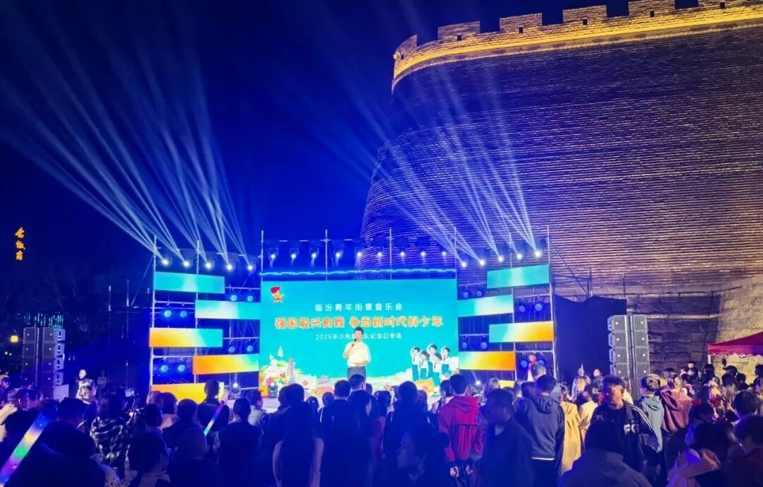 10月13日晚,临汾古城墙锣鼓舞台灯火璀璨、歌声悠扬,由团市委、市少工委联合举办的“强国复兴有我 争当新时代好少年”少先队建队纪念日专场街景音乐会在这里温情开演。