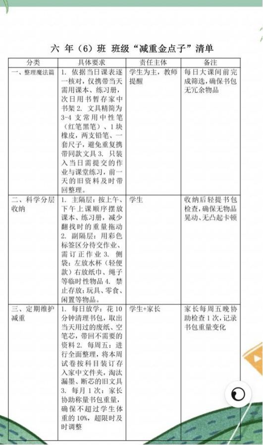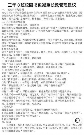 活动最后,每个班级发布《校园书包减负长效管理建议》,将“轻装理念”纳入学校常规管理,让减负成效持续惠及每一位学子。