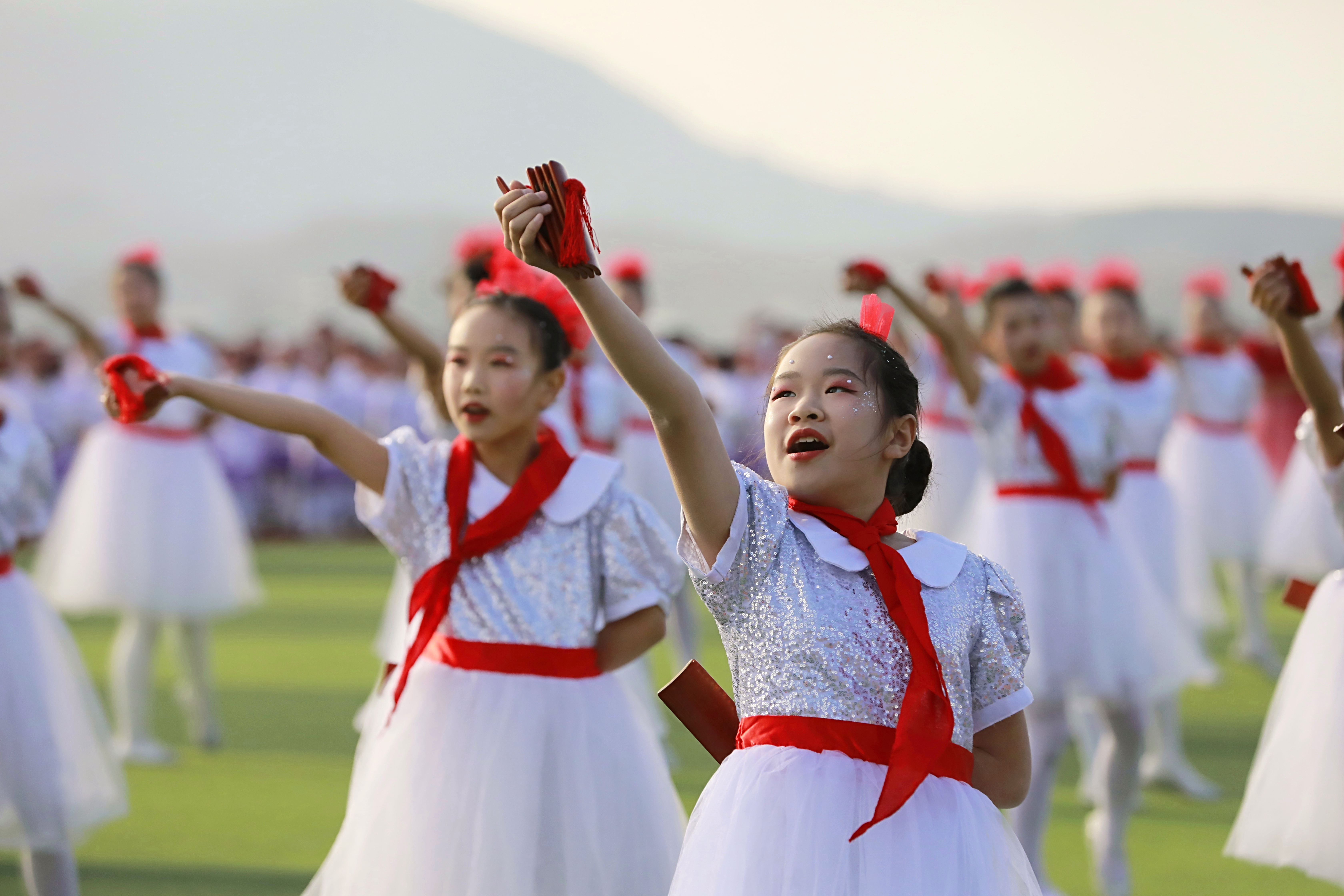“竹板声声脆又响,红色文化永流芳!”清脆的快板声与稚嫩而坚定的童声交织回荡。由百余名师生自编自演的“红韵满校园”红色文化主题展演在气势如虹的快板合诵中拉开帷幕。孩子们手持竹板,节奏明快,声音铿锵:“英雄群像耀史册,精神不朽照前方。红韵悠悠代代昌,红韵悠悠代代昌!”整齐划一的动作,坚定有力的朗诵,瞬间将全场带入浓厚的红色氛围中。