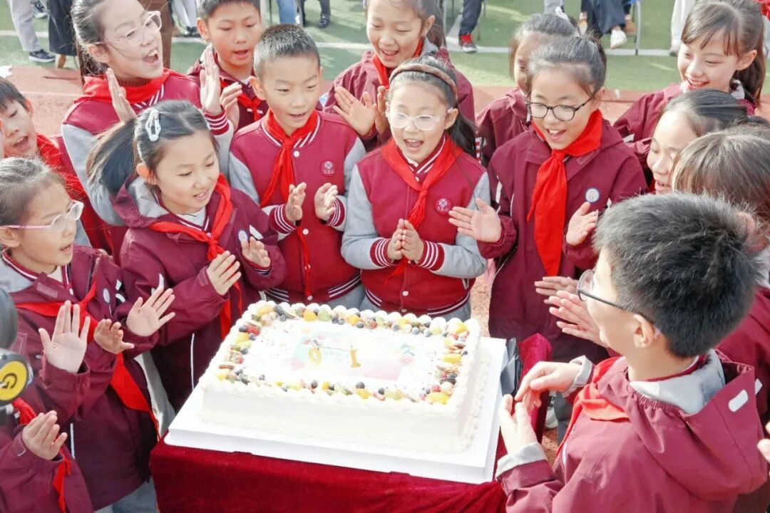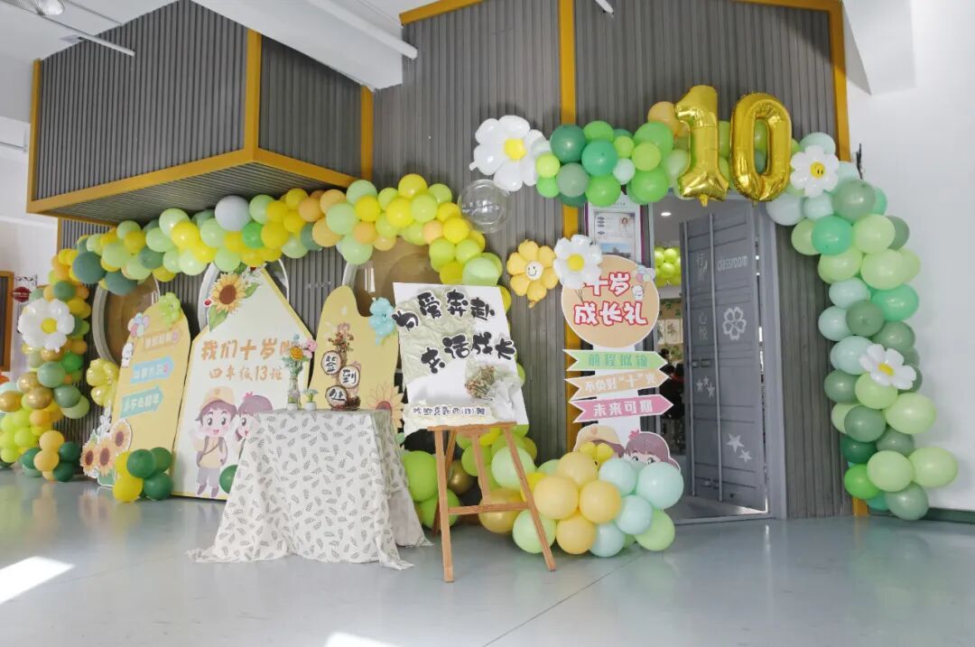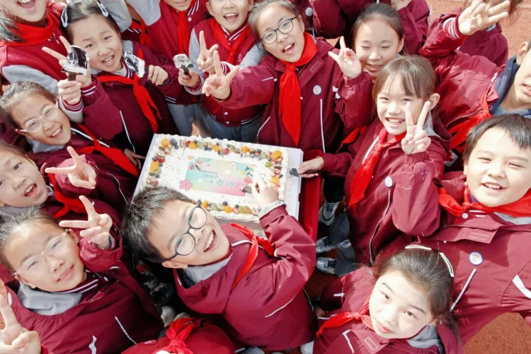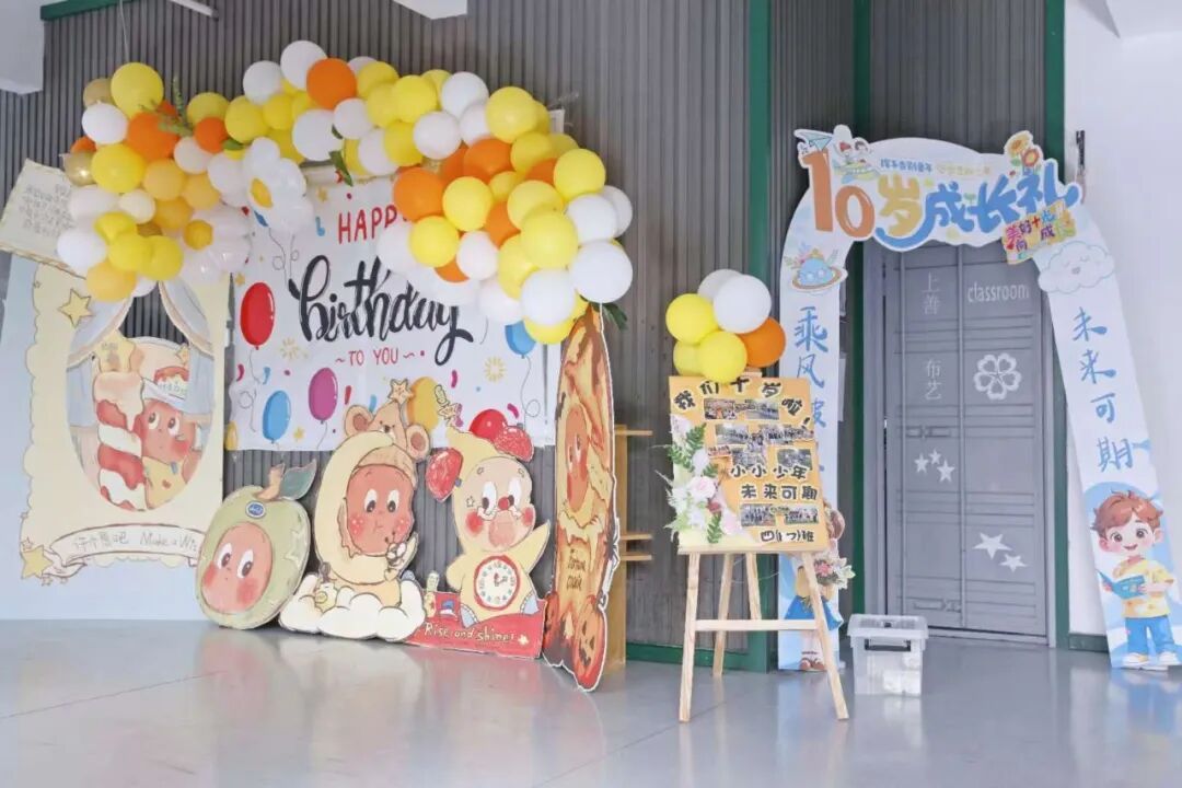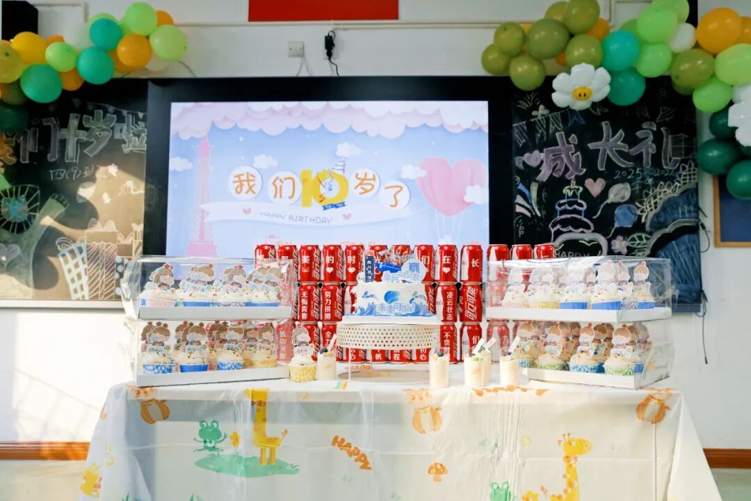 最温馨的环节莫过于集体庆生。歌声过后,孩子们在学生代表的带领下庄严宣誓,坚定的誓言回荡在每个人心间。随后,他们迈过寓意深远的“成长行善”拱门,从老师手中接过寄托祝福的成长果,并用合影的方式,为十岁这个人生的里程碑刻下了最温暖的印记。
