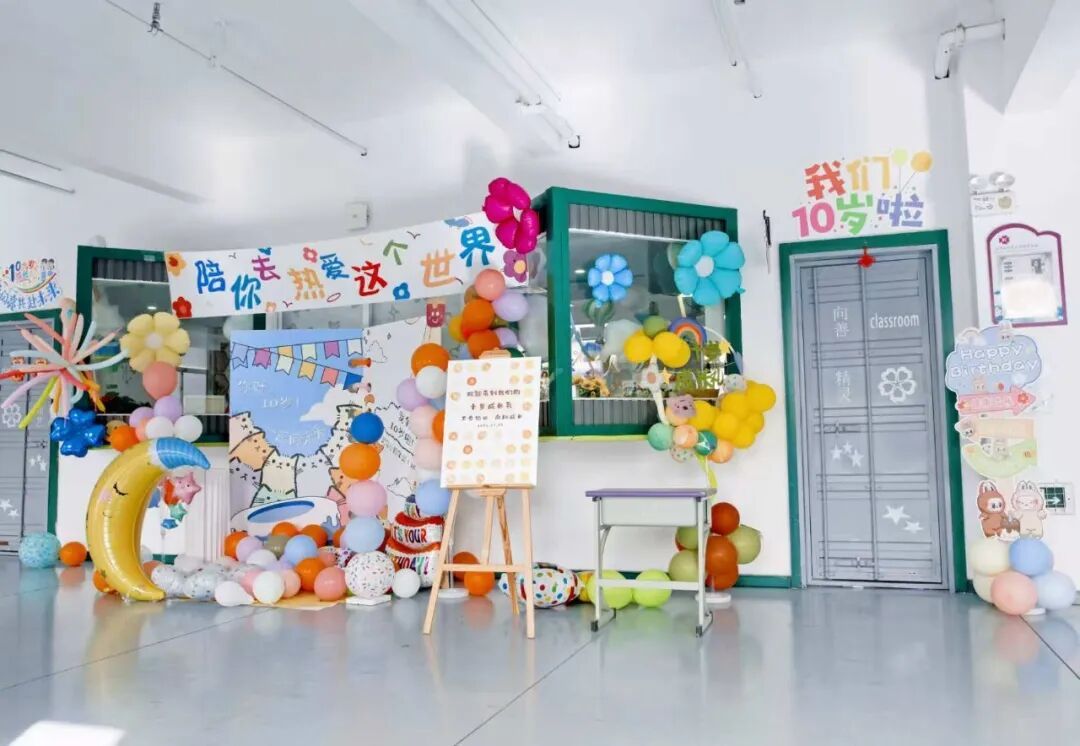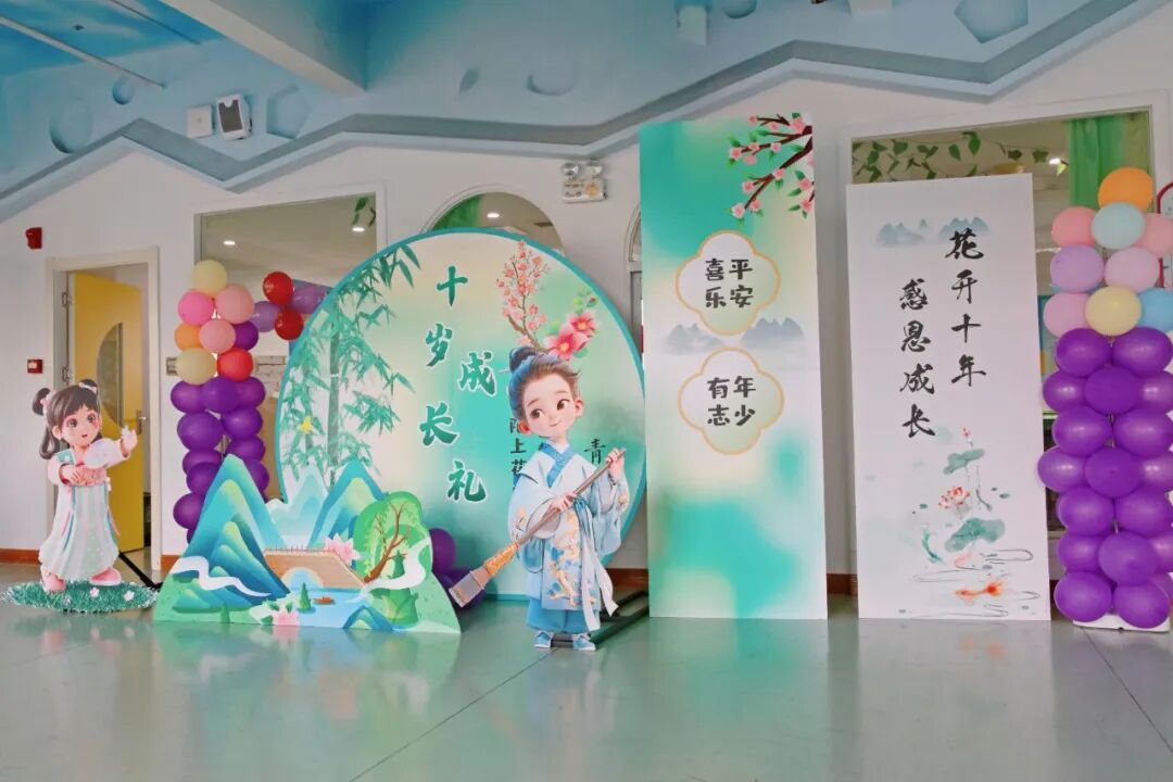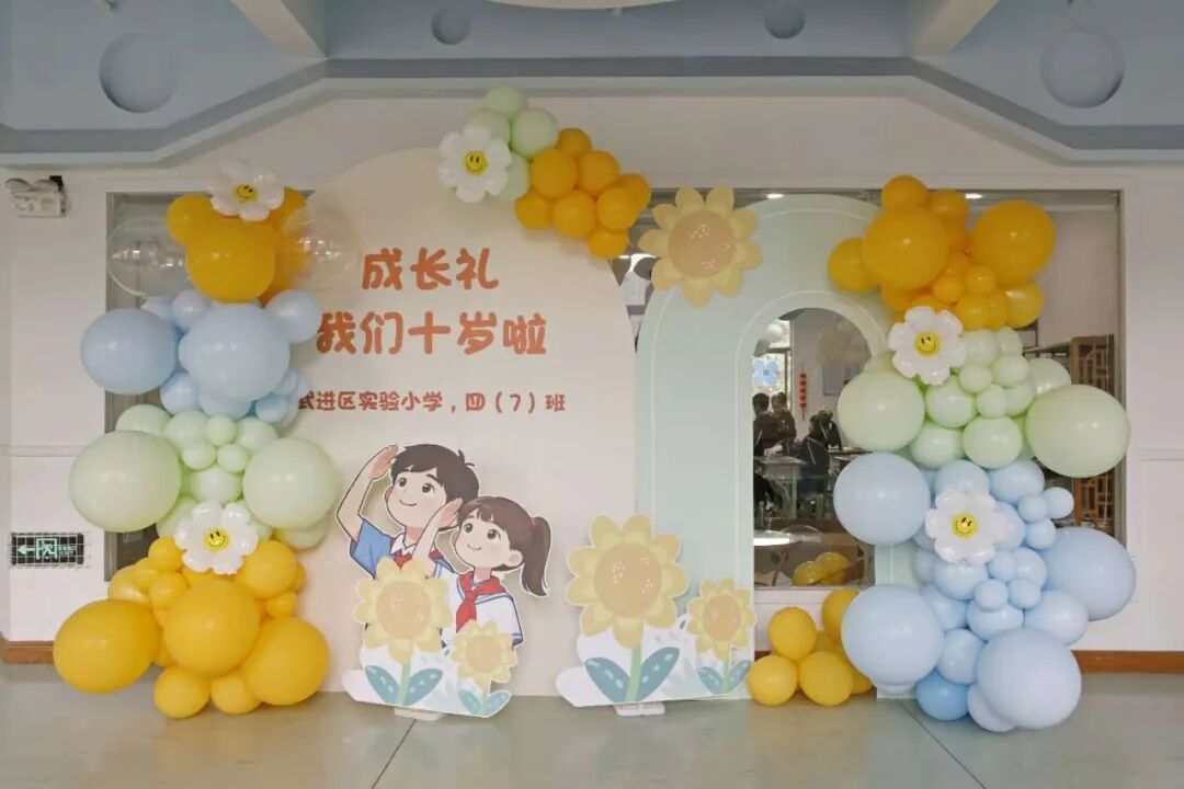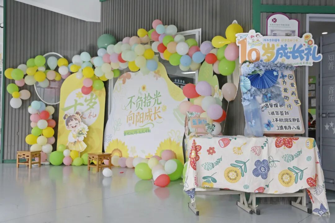 最温馨的环节莫过于集体庆生。歌声过后,孩子们在学生代表的带领下庄严宣誓,坚定的誓言回荡在每个人心间。随后,他们迈过寓意深远的“成长行善”拱门,从老师手中接过寄托祝福的成长果,并用合影的方式,为十岁这个人生的里程碑刻下了最温暖的印记。