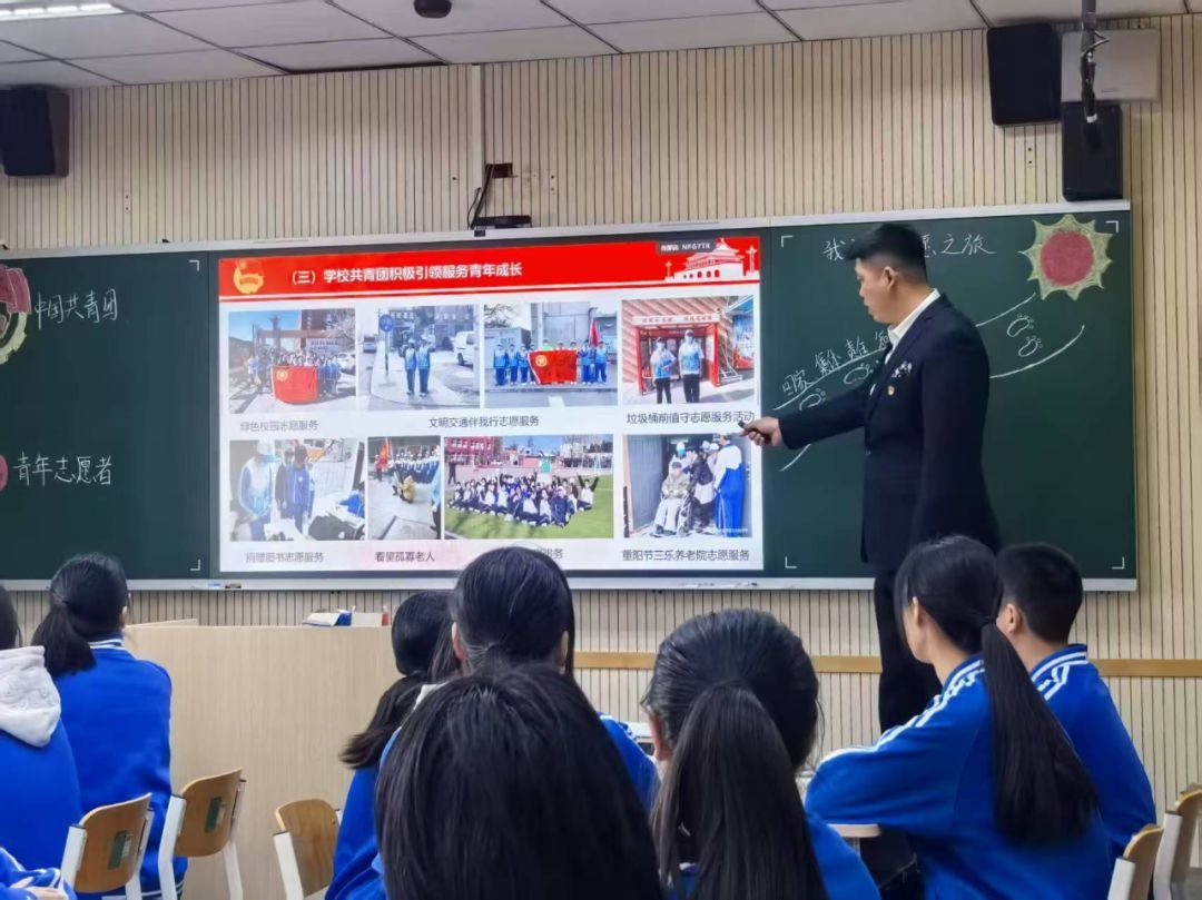 本节课以“我们参与体验奉献、共青团引领青年奉献、青年榜样如何奉献、新时代中学生奉献社会的路径”为清晰逻辑主线,构建起一体化教学设计。课程由思政课教师赵雪与校团委书记石志超联合执教,深度融合思政课思想引领与团课组织优势,既帮助初中生筑牢理想信念之基,又推动奉献精神从认知转化为实际行动,为“思政+共青团”融合课教学提供了可落地、可推广的实践范式。