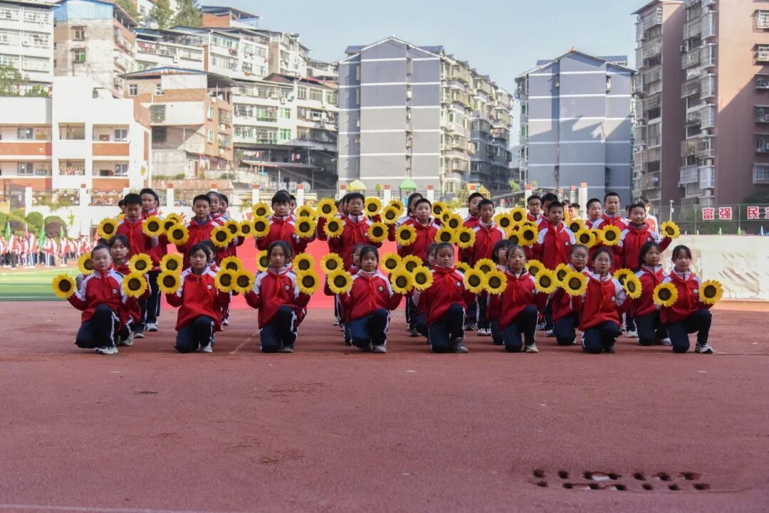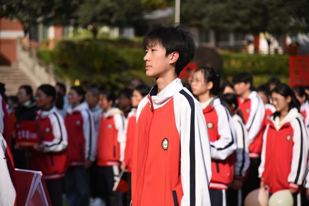操场上彩旗飞扬,师生热情高涨,