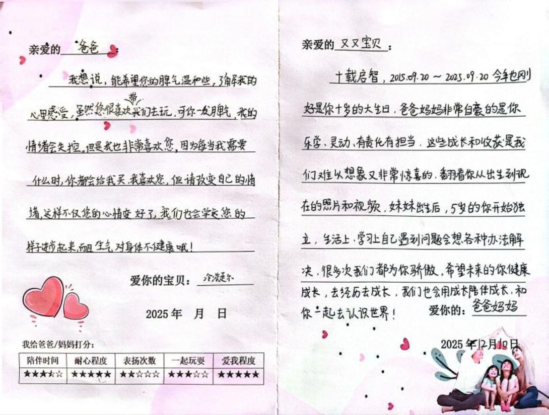 • 温情联结:家长寄语环节暖意浓浓,许多家长精心为孩子准备了十岁礼视频,真挚的话语与画面让现场满是感动;最后,全体师生与家长同唱童年之歌,在歌声中完成成长的洗礼,让孩子们带着父母的期盼、老师的祝福,勇敢奔赴未来。