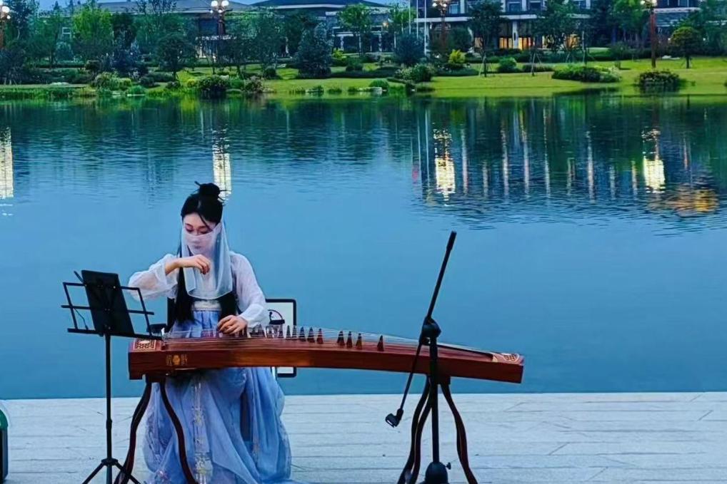 走进平乐古镇,节日期间每天下午除了民谣弹唱和川剧变脸,还有身着汉服的演奏者演奏琵琶、古筝,悠扬乐声与古镇的潺潺流水相映成趣。夜幕降临,平乐古镇的“百米竹龙”点缀着数百盏七彩LED灯,在月光与古镇灯火的映照下巡游,呈现“鱼龙共舞”的盛景。