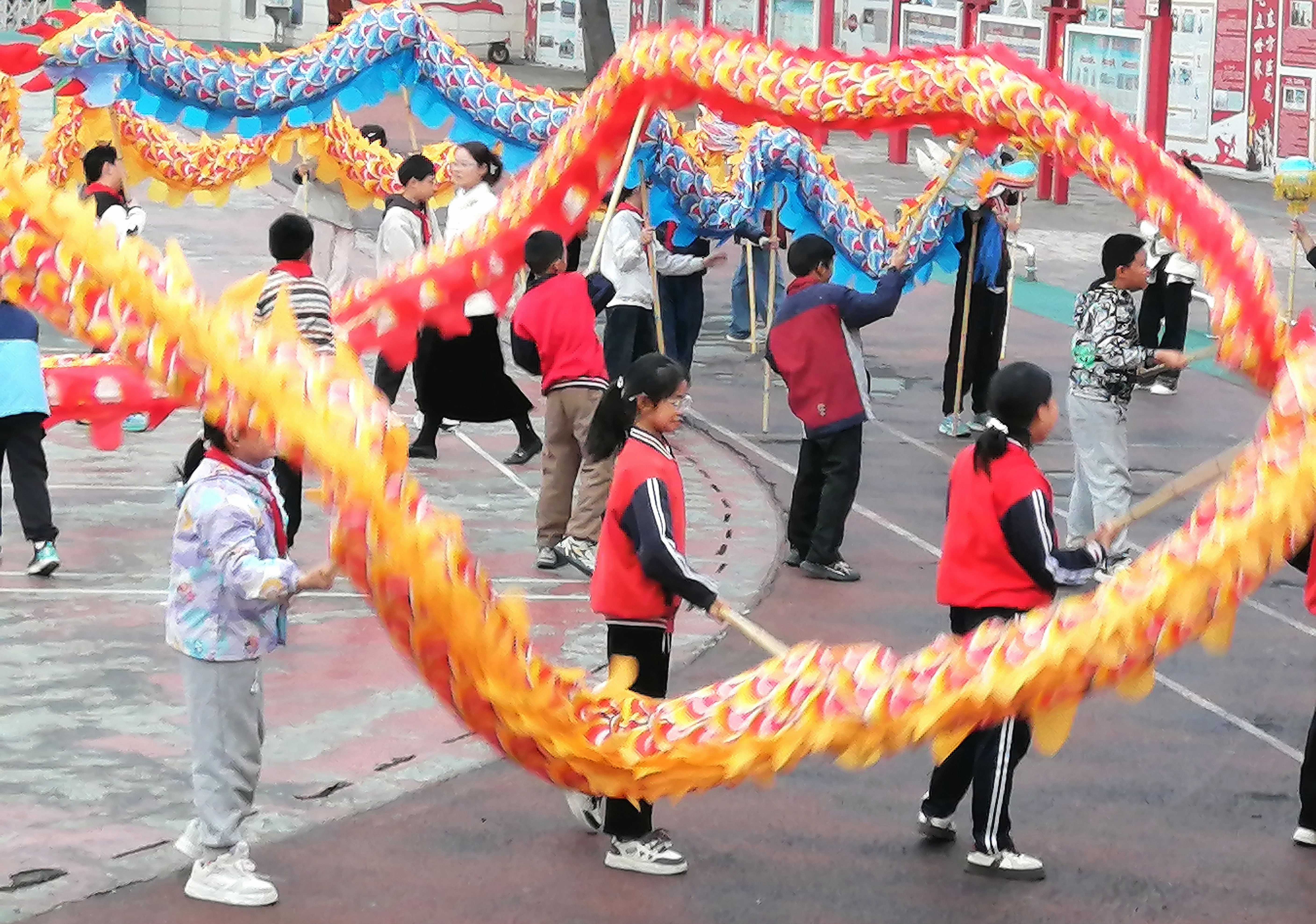 为传承传统舞龙这一非物质文化遗产,施洋小学于2024年春季学期正式组建了5支舞龙队,学校将这项非遗传承与社团活动、课后服务有机融合,探索出了一条传统文化育人的新路径。“起龙!转跳!”在操场上,孩子们高举龙头,完成一系列高难度动作。虽然汗水浸湿了衣背,但大家的脸上洋溢着自豪:“刚开始觉得舞龙很累,现在越来越喜欢。老师说我们舞的是几百年的传统文化,感觉特别骄傲。”