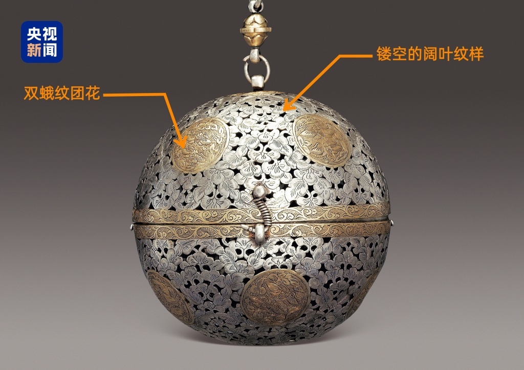 这件鎏金双蛾团花纹银香囊便能很好印证