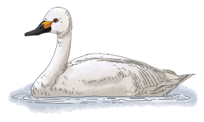 在这三种天鹅中,我最容易识别。首先,我前额上的黑色疣突就是我的标志,也是我名字的由来。其次,我是体形最大的天鹅:身长可达1.5米,体重15千克,翼展2~ 2.4米。