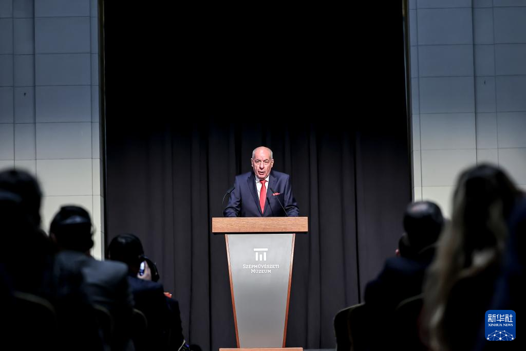 11月27日,在匈牙利布达佩斯,布达佩斯美术馆馆长巴恩·拉斯洛在开幕式上致辞。