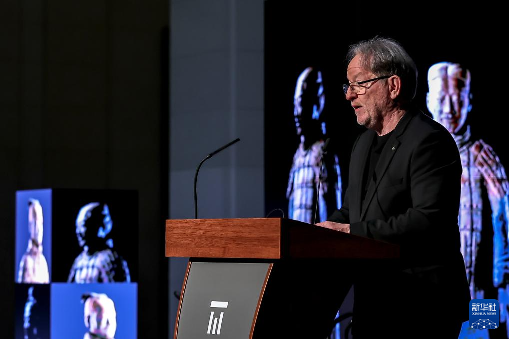 11月27日,在匈牙利布达佩斯,展览策展人福伊恰克·捷尔吉在开幕式上致辞。