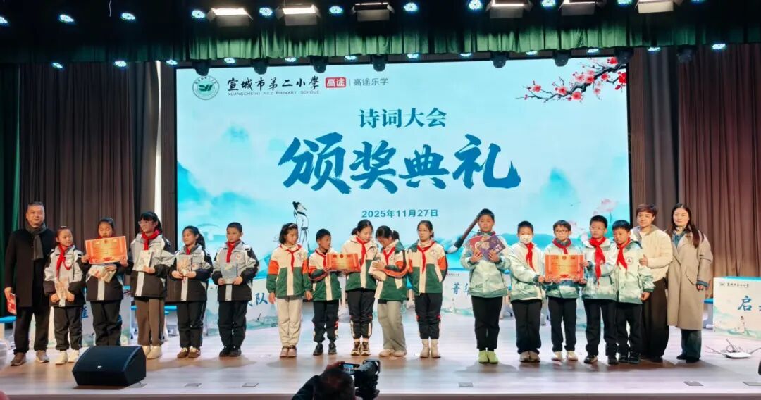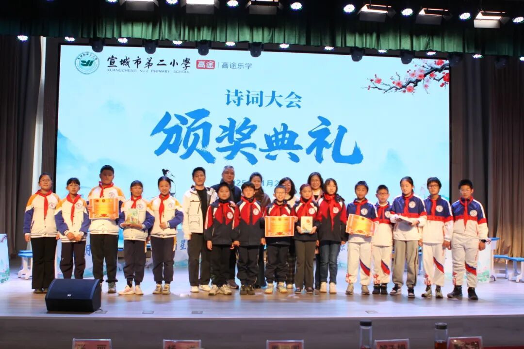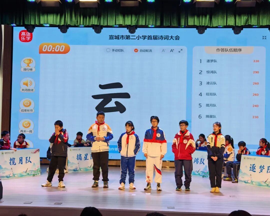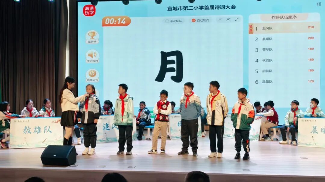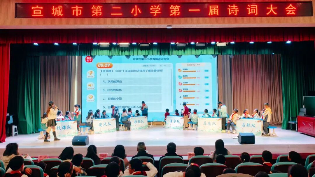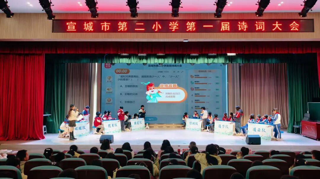 为传承中华优秀传统文化,点燃学子对古典诗词的热爱,11月27日上午,宣城市第二小学报告厅内诗声朗朗、掌声雷动,五、六年级诗词大会在此隆重举行。来自各班级的12支代表队同台竞技,在诗词的海洋中展开了一场精彩绝伦的比拼。