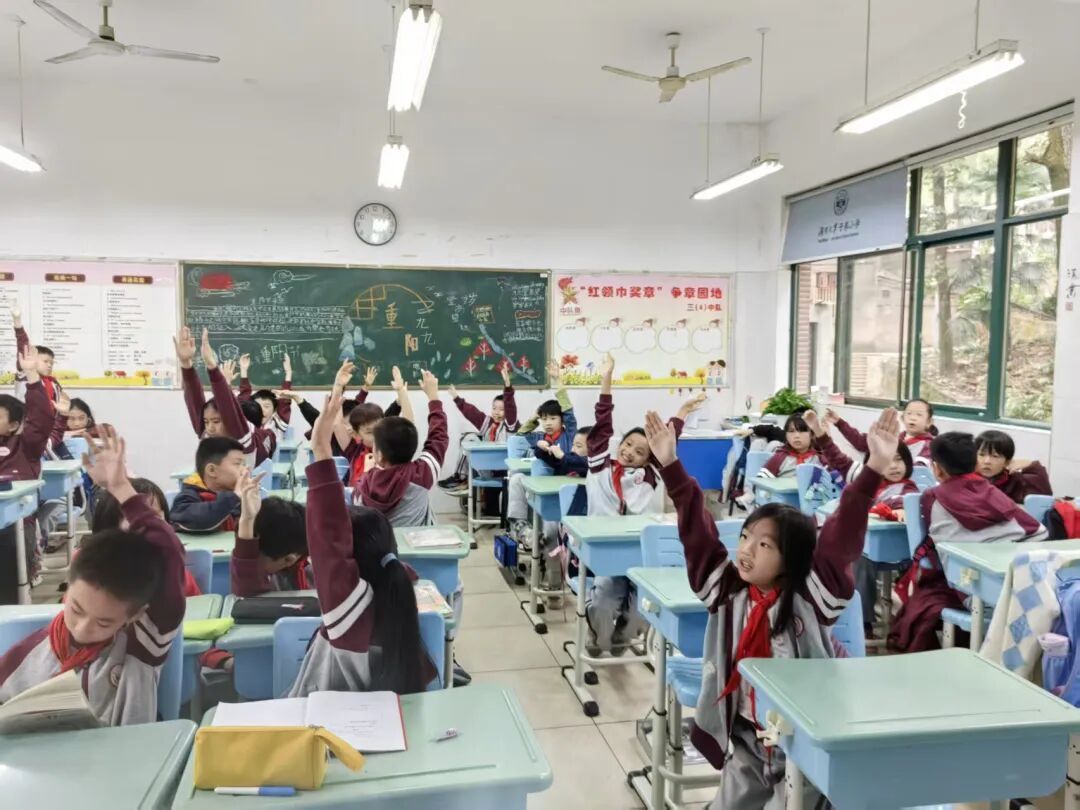 竹海深处的天问书院,学子们于此开展研学诵读。当“瞻彼淇奥,绿竹猗猗”的朗朗书声响起,千年前的《诗经》雅韵,便与窗外万顷竹涛的天然清响,交织成一场跨越时空的共鸣。书声如玉石,竹韵似清弦,在此间回荡,生动诠释着国学经典在天地自然中焕发的永恒魅力。 这一独具匠心的情境,正是湖南大学子弟小学“行走的课堂”之缩影。学校不仅在校内坚持晨读暮诵,更将课堂延伸至天问书院这般人文与自然交融的胜境,让经典学习从书本走向天地。在竹海的怀抱中诵读咏竹的诗篇,文字与实景相映,历史与当下贯通。传统文化不再仅是课本中的章句,更成为一种可感、可听、可沉浸的鲜活体验。经典由此真正浸润学生的成长,在身临其境的感悟中,焕发出蓬勃的新生机。
