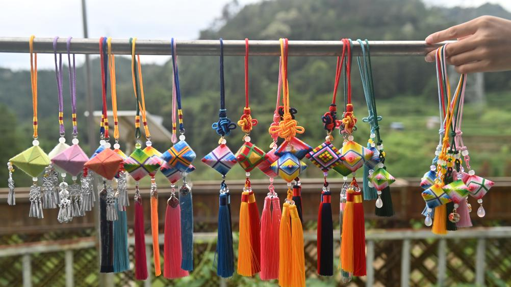 侗族吉祥花是广西三江侗族自治县的传统手工艺品,由心灵手巧的侗族女性一丝一线编织而成,融侗族印染、刺绣、织锦等技艺于一体,最早用来悬挂在风雨桥、鼓楼等公共建筑中,是祈求风调雨顺的吉祥饰品,其制作技艺列入柳州市非物质文化遗产代表性项目名录。近年来,广西三江积极研发文旅产品,侗族吉祥花从传统的公共建筑挂饰变成人们身上的寻常饰品,日益热销文旅市场
