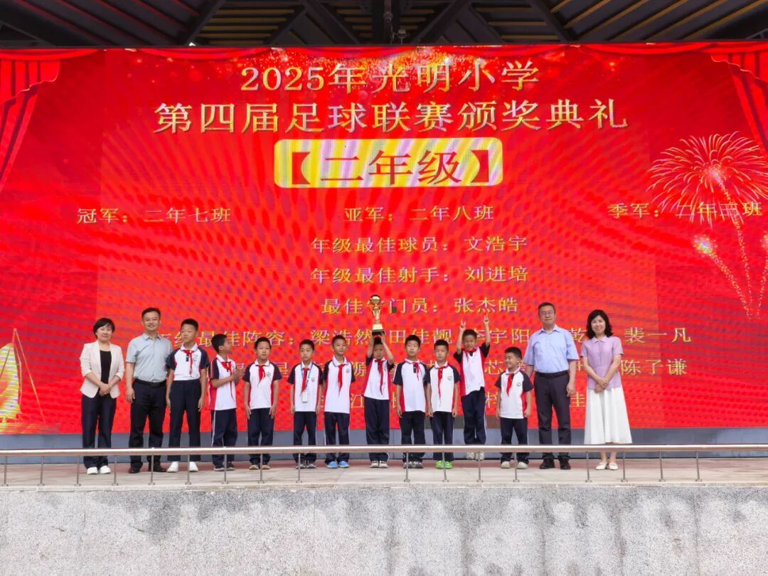 光明小学第四届足球联赛虽已落幕,但它所点燃的体育精神、凝聚的团队力量、迸发的青春活力,将持续在校园激荡回响。以此为崭新起点,学校足球事业必将迈上新台阶,为孩子们的成长之路镌刻更多精彩,不断培育出更多热爱足球、崇尚运动、勇敢逐梦的新时代光明好少年。