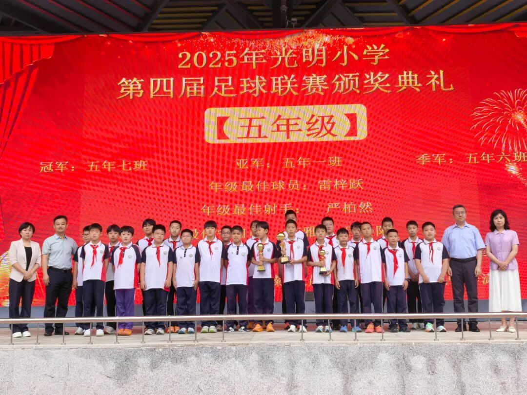 在夏日骄阳下,光明小学第四届足球联赛历经两个半月的激烈角逐,于近日圆满落幕。这场涵盖二至六年级36个班级的足球盛宴,上演了73场精彩正赛及多场友谊赛,为校园注入了无限活力与激情。