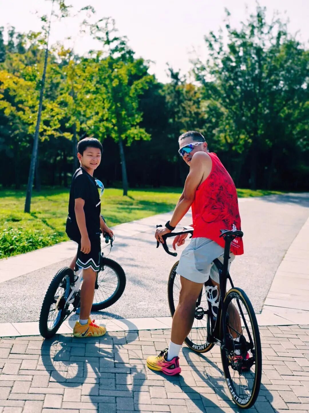 我每周都要和爸爸骑行。运动中父子可以聊天,将各自的生活进行分享和讨论。通过运动,父子彼此尊重,共同进步,其乐无穷!