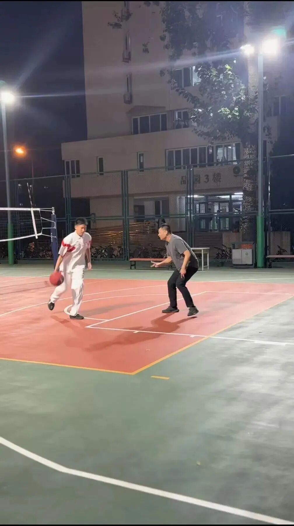 学习再紧张,不忘锻炼时。我每天都要和爸爸在篮球场挥汗练球技。