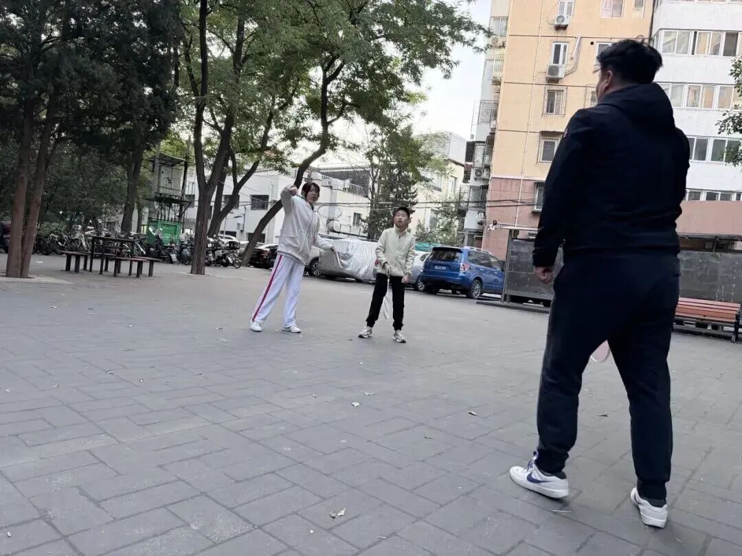 羽毛球不仅在场馆。我们每天和爸爸过几个来回。