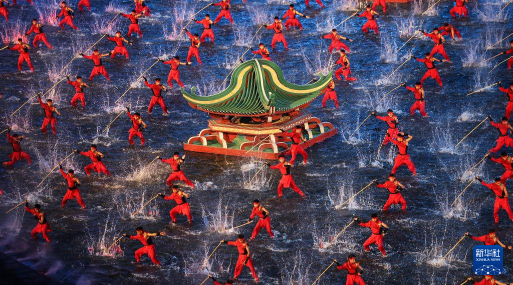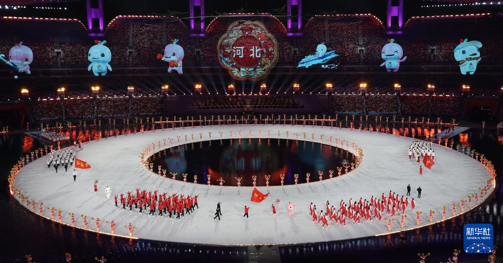 11月9日,第十五届全国运动会吉祥物“喜洋洋”和“乐融融”在开幕式现场表演。