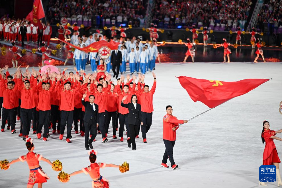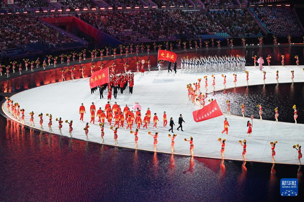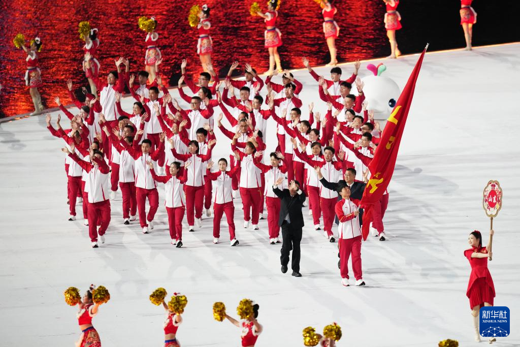 11月9日,新疆生产建设兵团体育代表团在入场仪式上。