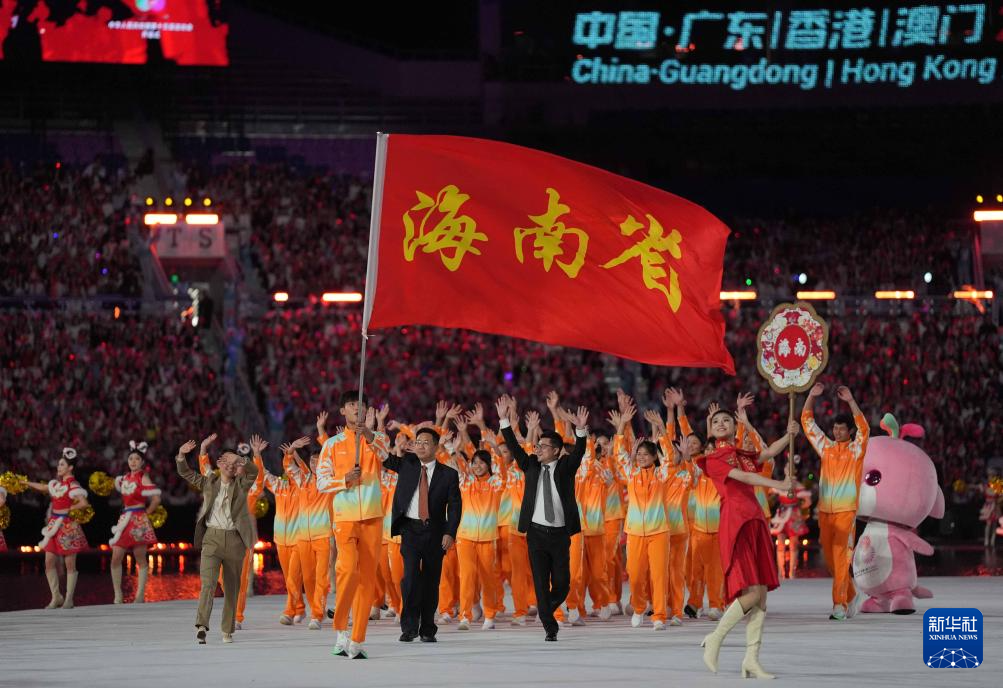 11月9日,广东省体育代表团、香港特别行政区体育代表团和澳门特别行政区体育代表团在入场仪式上共同入场。