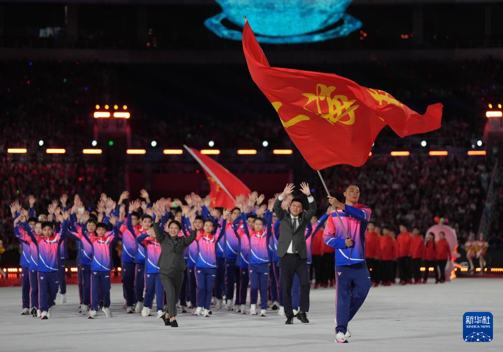11月9日,广东省体育代表团、香港特别行政区体育代表团、澳门特别行政区体育代表团在入场仪式上共同入场。