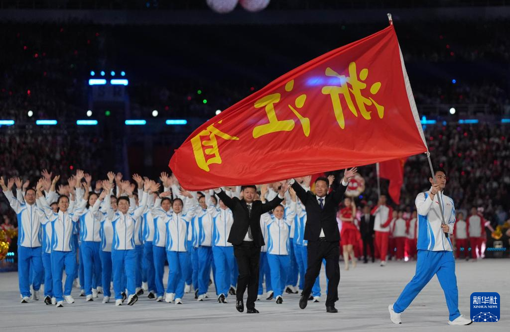 11月9日,河北省体育代表团旗手巩立姣在入场仪式上。