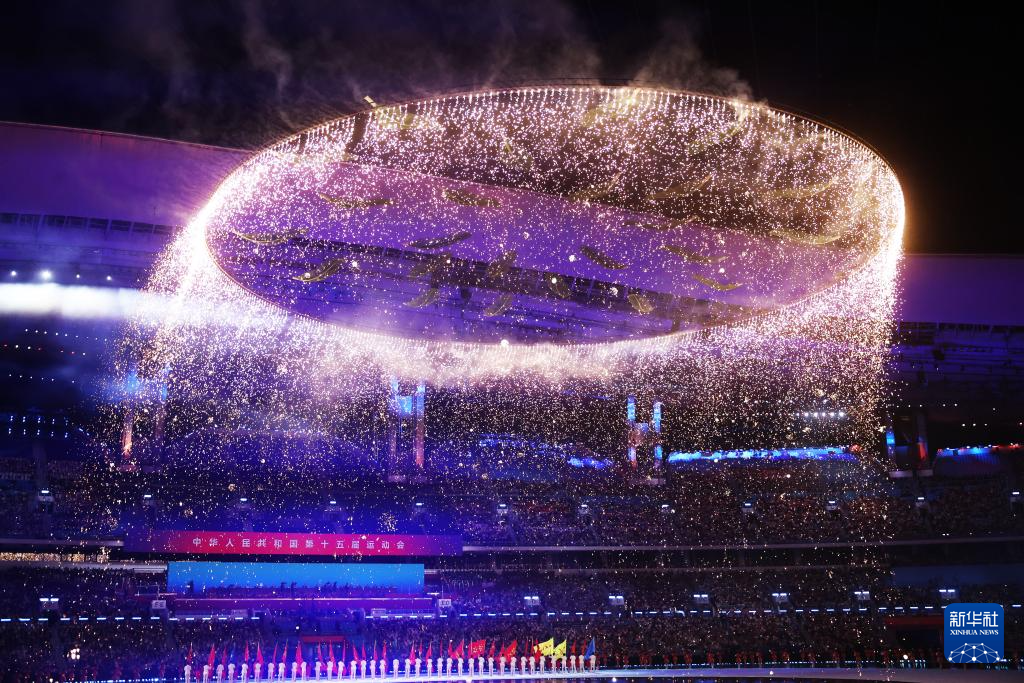 11月9日,中华人民共和国国旗、中华人民共和国运动会会旗和第十五届全国运动会会旗在开幕式现场升起。