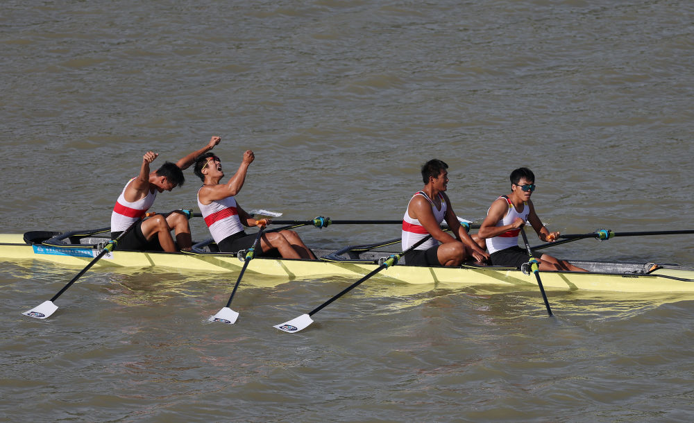 赛艇男子四人双桨决赛中,由张自毫、臧哈、张汉文、蔡鹏鹏组成的江苏队发挥出色,以4分12秒24的成绩率先冲线,战胜由旺加、母晓龙、刘百顺、张全组成的广东队。后者是代表中国队参加今年上海赛艇世锦赛男子四人双桨项目的原班组合。
