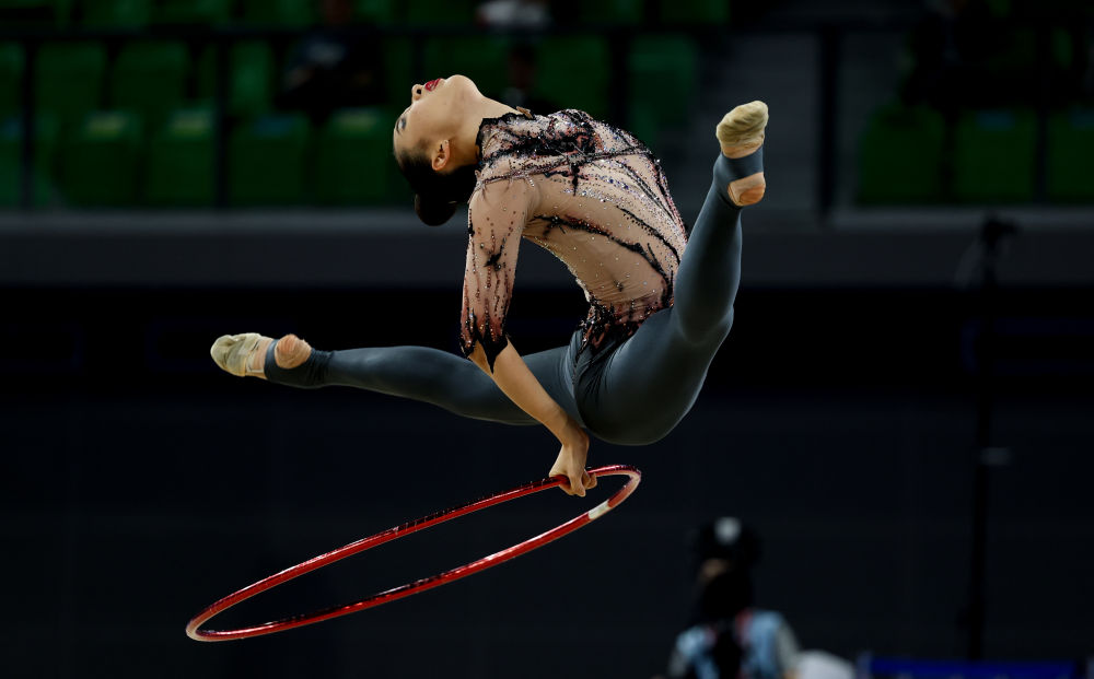 11月10日,陕西队选手王子露在圈操比赛中。新华社记者 毛思倩 摄
