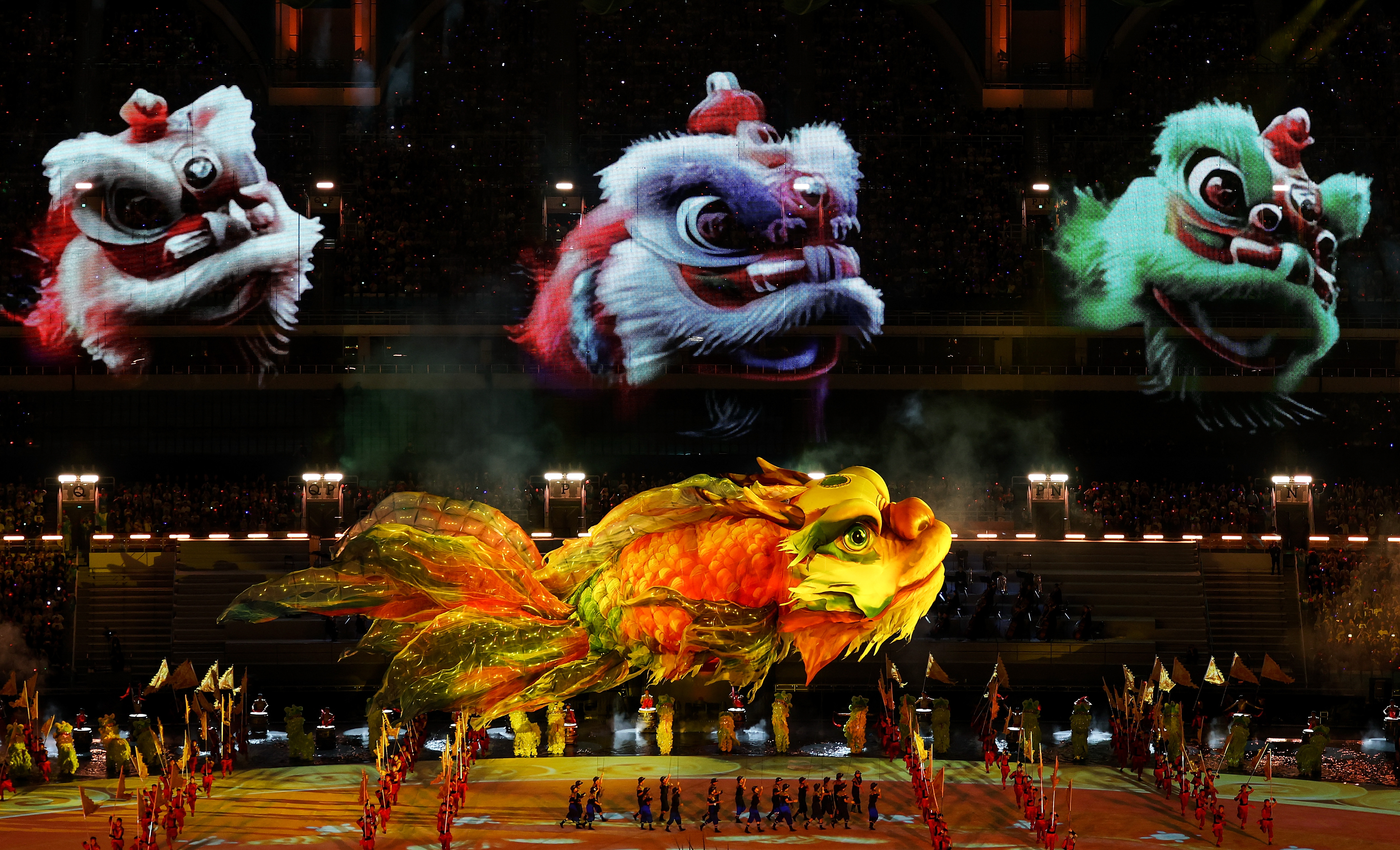 这是11月9日拍摄的第十五届全国运动会开幕式现场表演上的鳌鱼。 新华社记者 赖向东 摄