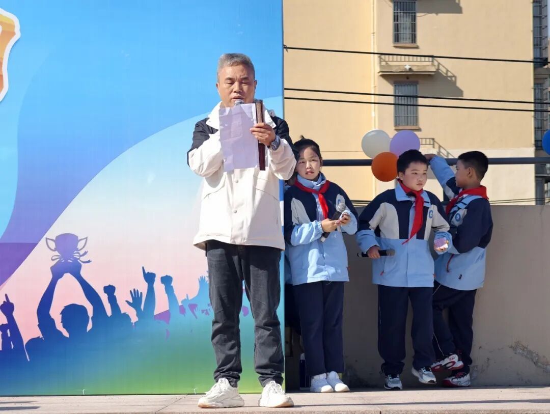 浮梁县第五小学副书记郑良开致开幕辞。他鼓励全体参赛者秉持“友谊第一,比赛第二”的精神,在赛道上全力以赴,在协作中凝聚力量,用拼搏诠释热爱,用欢笑传递快乐。