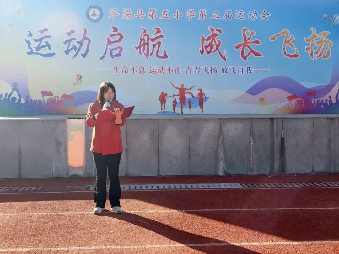 随后,浮梁县第五小学书记、校长胡双全宣布:“浮梁县第五小学第三届运动会开幕!”