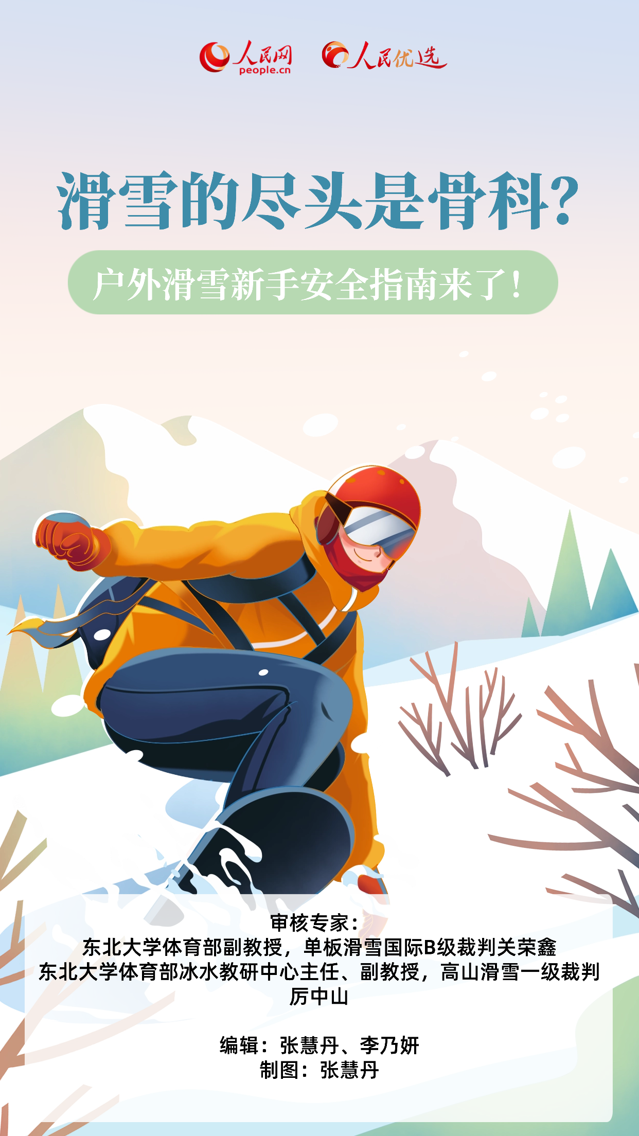 本期指导专家:东北大学体育部副教授,单板滑雪国际B级裁判关荣鑫;东北大学体育部冰水教研中心主任、副教授,高山滑雪一级裁判厉中山