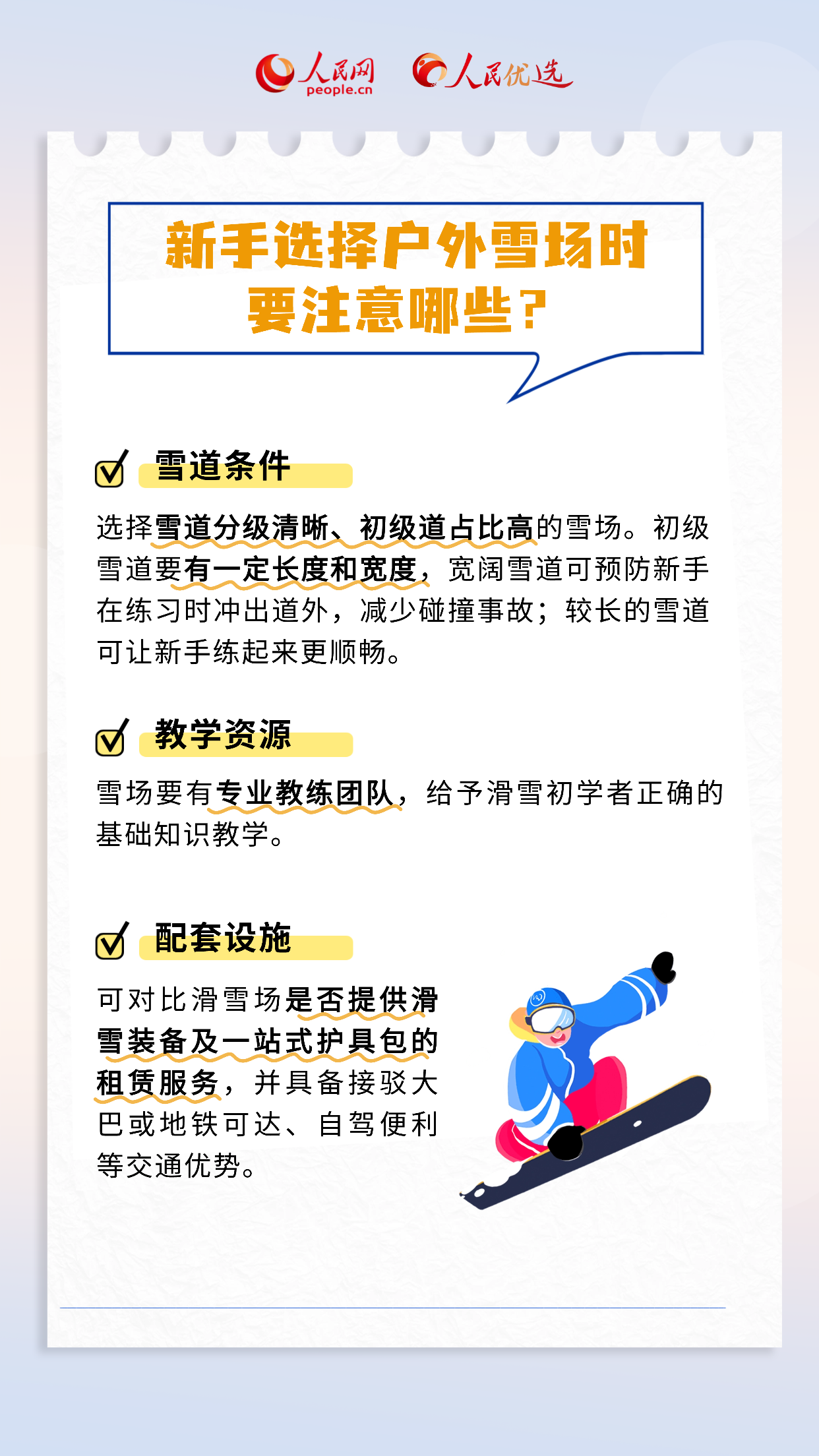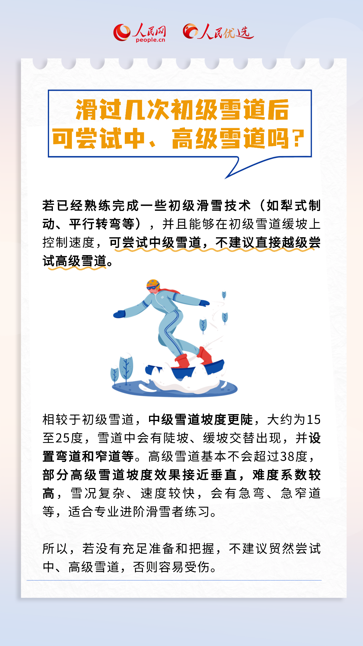 雪季来临,各地雪场已陆续开板。许多滑雪爱好者会选择去户外雪场拥抱自然、乐享冬日时光。但不少新手在踏上滑雪板时,会因错误的滑雪方式、选错雪道而受伤。那么,滑雪新手应如何在享受滑雪乐趣的同时,保障自己的安全呢?本期《人民优选来了》,带您一文了解户外滑雪。