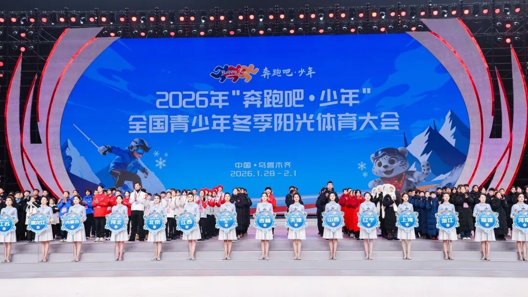 “嗖——”冰刀划过冰面的清脆声响,像一串串快乐的音符,在天山脚下奏响!1月29日,2026年“奔跑吧·少年”全国青少年冬季阳光体育大会,在乌鲁木齐市奥林匹克体育中心体育馆盛大开幕啦!来自全国各省、自治区、直辖市、新疆生产建设兵团,还有香港、澳门特别行政区的35个代表团小伙伴们齐聚于此,共赴这场热闹又好玩的冰雪盛会!