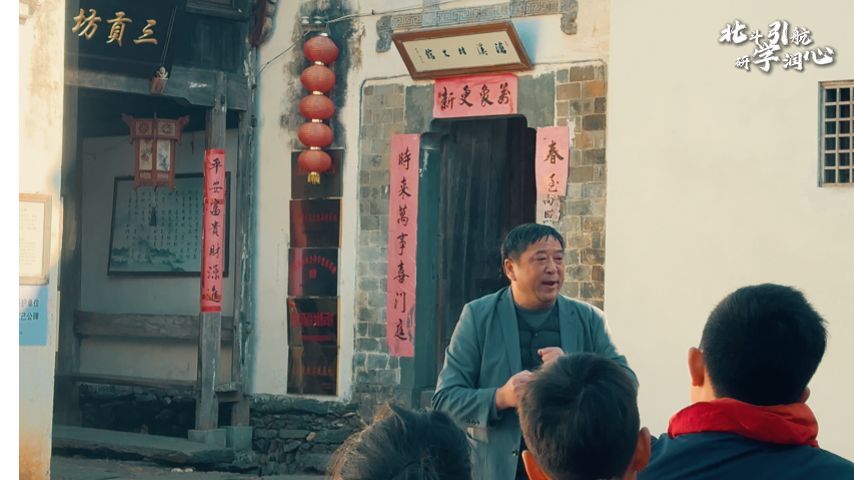 勒功学校的王建来老师化身 “文化向导”,循着古巷、古祠的脉络,为孩子们讲述南宋理学家朱宏与朱熹的深厚渊源 —— 朱宏与朱熹志同道合,共同探讨 “存天理、灭人欲” 的理学精要,将 “克己守正” 的家训智慧刻进了沧溪的血脉。