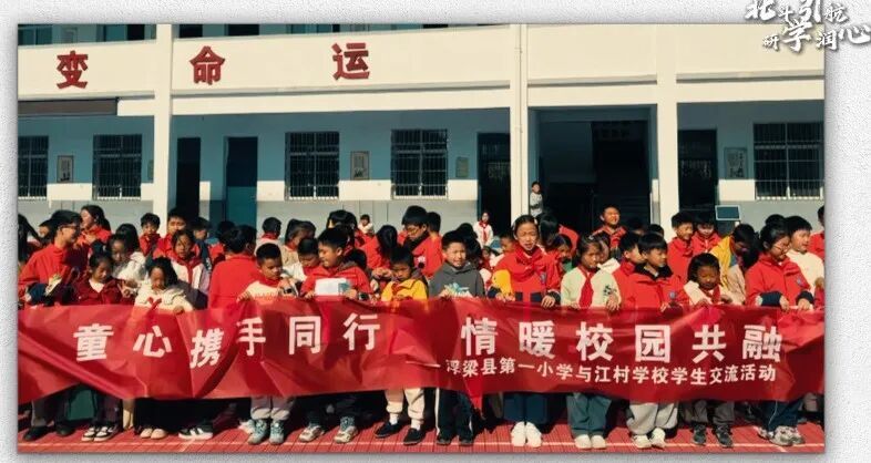 研学路上不止有历史与感动,还有温暖的同行相伴。浮梁一小的孩子们与江村学校的小伙伴开展了 “手拉手” 联谊活动:欢快的文艺表演、满载心意的互赠礼物、趣味十足的小游戏,