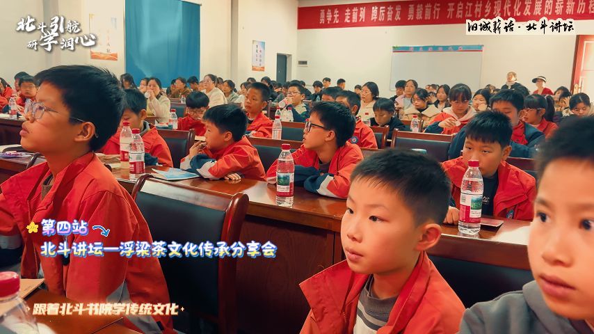 研学的最后一站,孩子们走进北斗书院主办的茶文化课堂,中国制茶大师江建鸿的到来,让大家近距离触摸浮梁茶的千年底蕴。