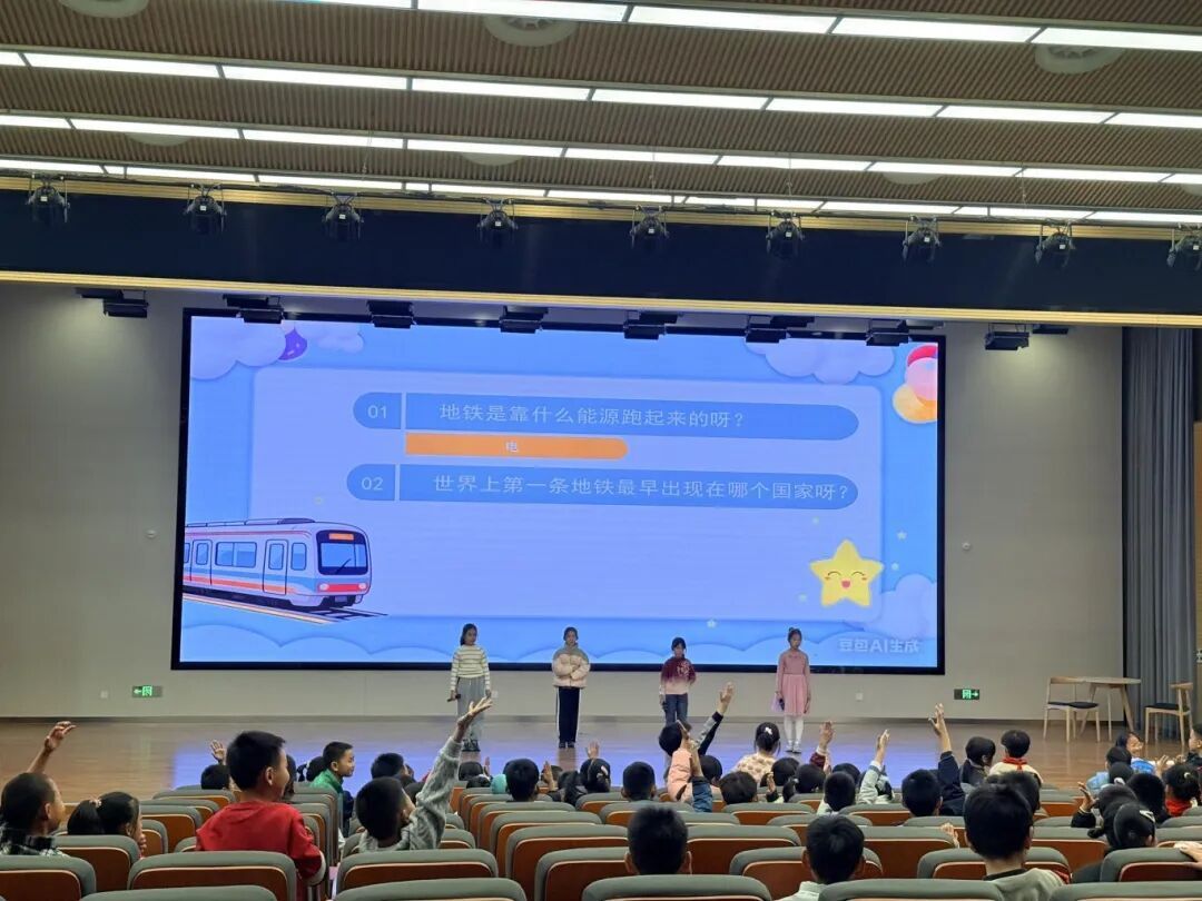 在“地铁小知识”环节,队员们通过讲坛系统了解了地铁的核心信息:地铁得名源于其多数运行时段处于地下隧道;一辆满载地铁的运力,相当于15辆公交车或75辆小汽车;它以电能为动力,是不排尾气的“环保出行工具”;而世界上首条地铁诞生于英国,至今已有160余年的历史。